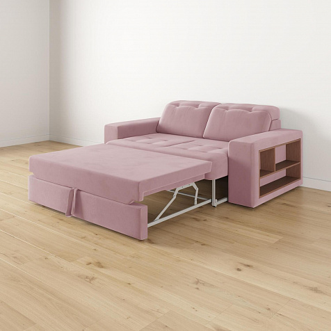 Выкатной механизм трансформации. Диван раскладывается в два движения. Сначала выкатите нижнюю планку до упора, а затем потяните внутреннее сиденье за специальную петлю вверх и на себя. Cиденье поднимется и зафиксируется.