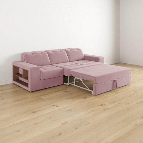 Выкатной механизм трансформации. Диван раскладывается в два движения. Сначала выкатите нижнюю планку до упора, а затем потяните внутреннее сиденье за специальную петлю вверх и на себя. Cиденье поднимется и зафиксируется.
