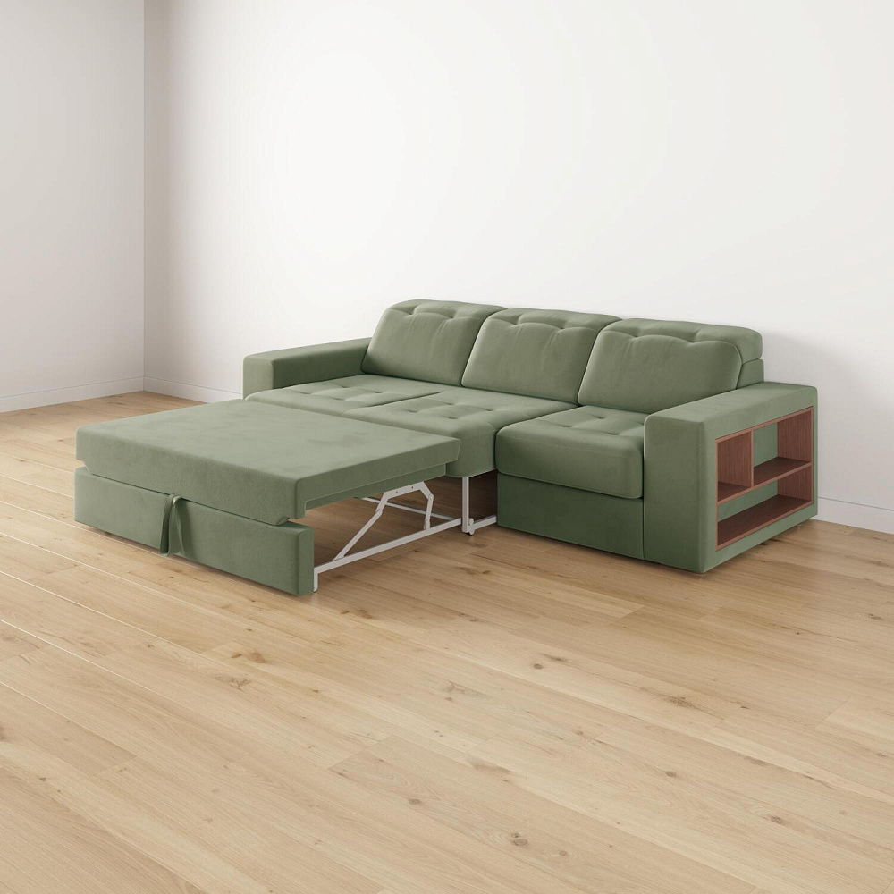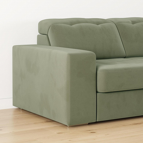Выкатной механизм трансформации. Диван раскладывается в два движения. Сначала выкатите нижнюю планку до упора, а затем потяните внутреннее сиденье за специальную петлю вверх и на себя. Cиденье поднимется и зафиксируется.