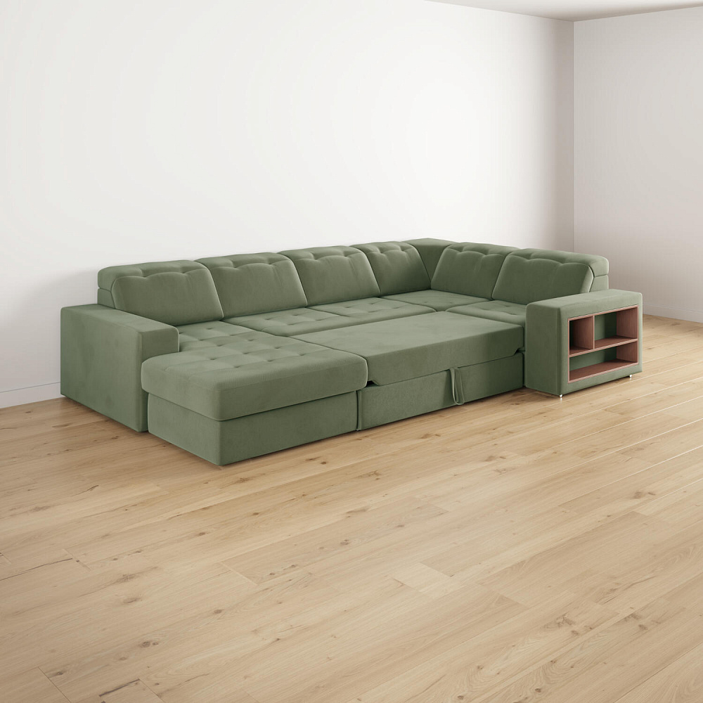 Механизм трансформации «Дельфин». Разложить диван можно двумя простыми движениями - выдвинуть нижнюю часть и потянуть появившееся спальное место вверх за специальную петлю.