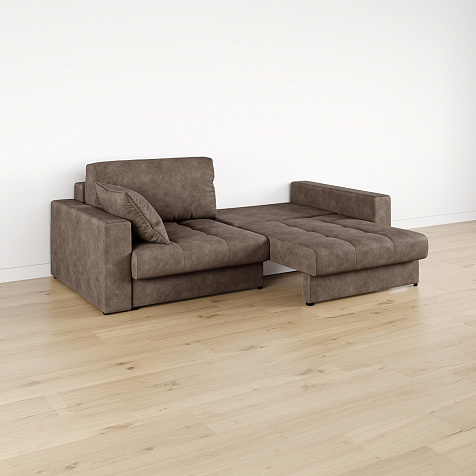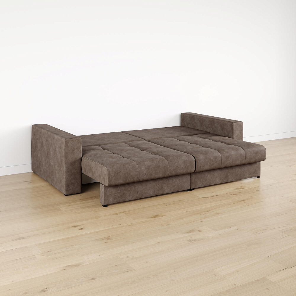 Бережный механизм трансформации «Тик-Так» двухсекционный. Сиденье выталкивается вверх, словно шагает вперед, и плавно опускается вниз без вреда для напольного покрытия. Половинки дивана раскладываются независимо друг от друга.