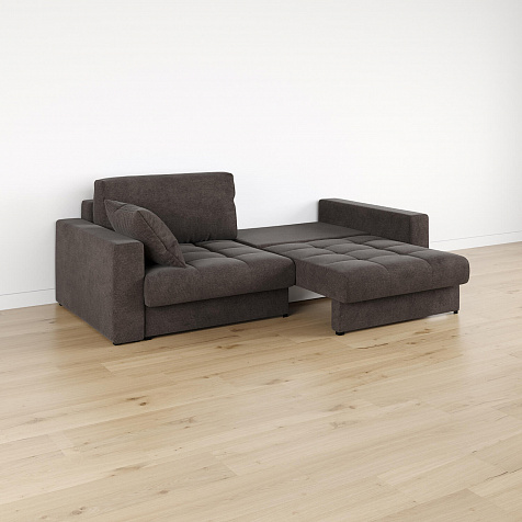 Бережный механизм трансформации «Тик-Так» двухсекционный. Сиденье выталкивается вверх, словно шагает вперед, и плавно опускается вниз без вреда для напольного покрытия. Половинки дивана раскладываются независимо друг от друга.