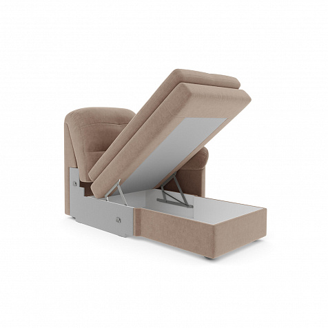 Правая оттоманка «Коннери» является частью модульной системы одноименной коллекции, позволяя составить идеальный угловой диван для вашей гостиной. Модель будет не только удобным местом для отдыха, но и зоной для хранения личных вещей. Сиденье кресла за счет особых эргономических свойств отличается комфортом. Под подъемным основанием находится вместительный ящик для хранения белья.