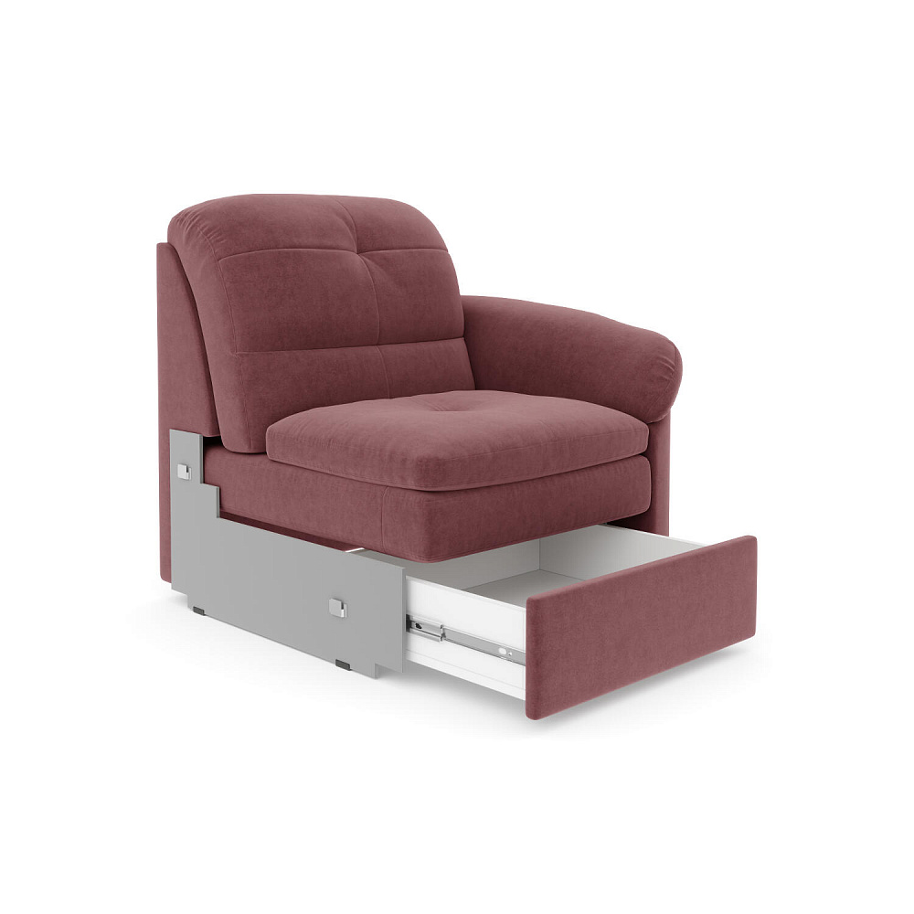 Кресло с правым подлокотником и ящиком «Коннери» является частью модульной системы одноименной коллекции, позволяя составить идеальный диван для вашей гостиной. Модель с ящиком будет не только удобным местом для отдыха, но и зоной для хранения личных вещей. Сиденье кресла за счет особых эргономических свойств отличается комфортом. Под основанием находится ящик для хранения белья, который легко открывается с помощью надежного выкатного механизма на шариковых направляющих.