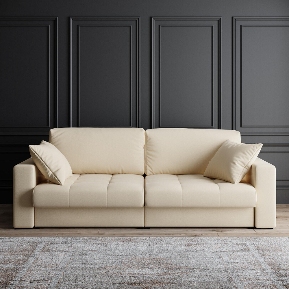 Диван «Райли» — идеальное сочетание лаконичного дизайна и комфорта. Диван обладает глубокой посадкой, а приспинные и декоративные подушки позволят создать самое удобное место для отдыха. Благодаря механизму трансформации «Тик-Так» диван можно легко превратить в полноценную кровать для двух человек. Независимый пружинный блок сделает отдых комфортным, а сон — крепким и спокойным.