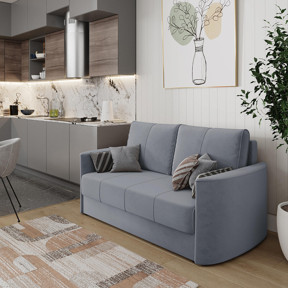 Двухместный диван «Амми» — это идеальное сочетание надёжности, простоты и комфорта. Прямая строчка на сиденье и приспинных подушках создает завершённый образ и придает модели мягкую геометричность. Механизм «Еврокнижка» в сложенном виде поможет сэкономить пространство в комнате и использовать диван для ежедневного сна. Благодаря универсальному дизайну, качественным материалам и эргономичности диван станет главным местом гостиной в современном стиле, сканди или лофт.