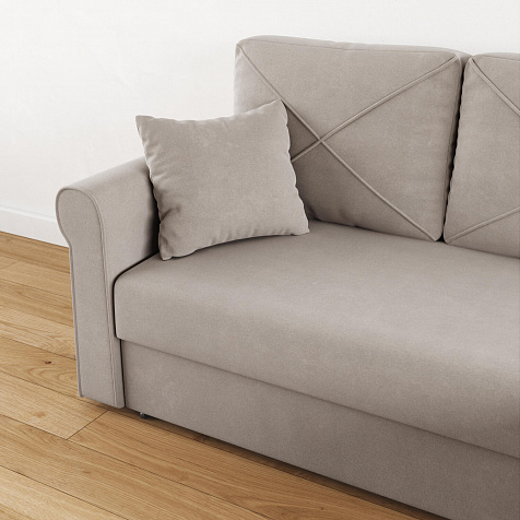 - Обивка из велюра. Диван выполнен в приятной на ощупь ткани, которая пропускает воздух, тянется и устойчива к истиранию.