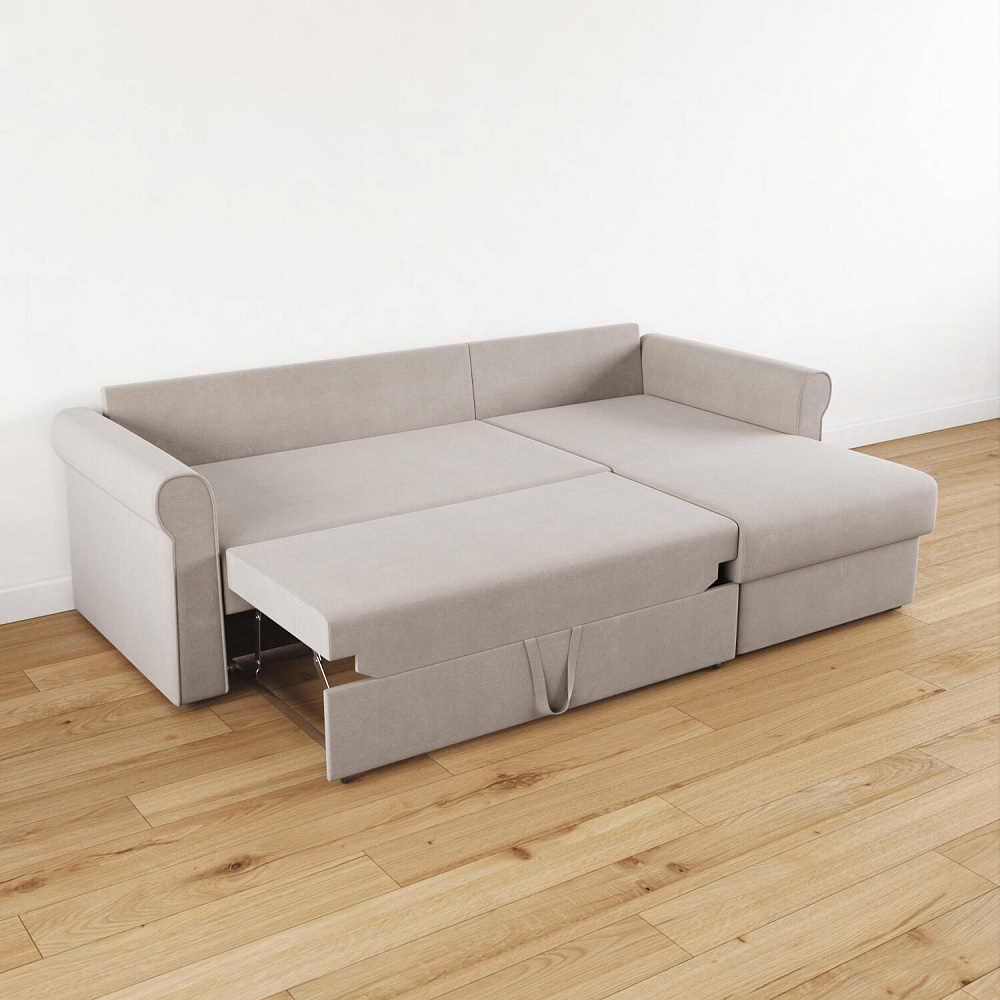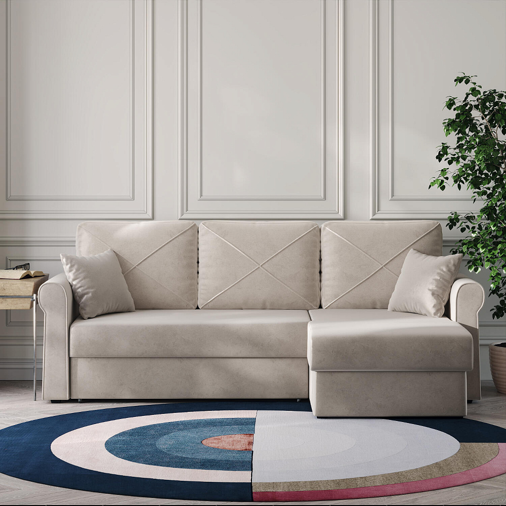 - Вместительный короб. В угловой части дивана скрыт ящик для постельных принадлежностей.