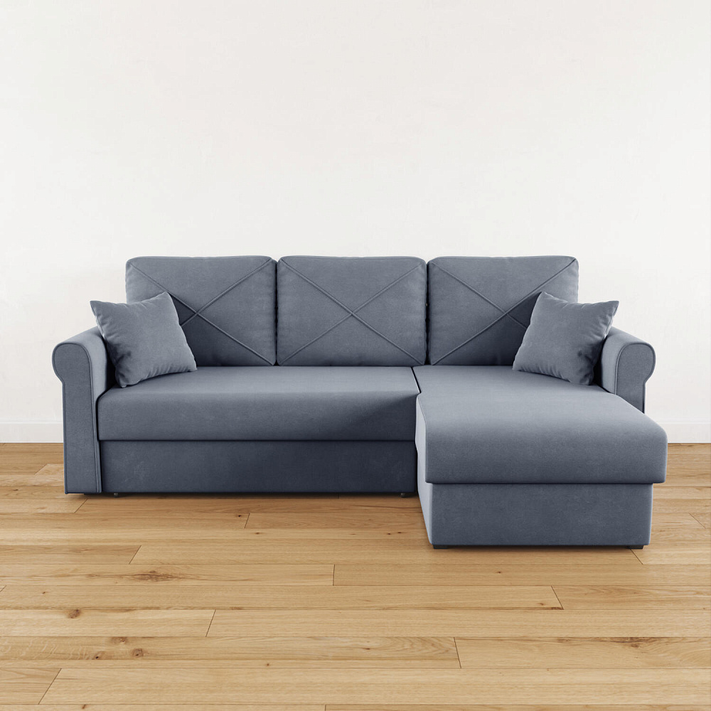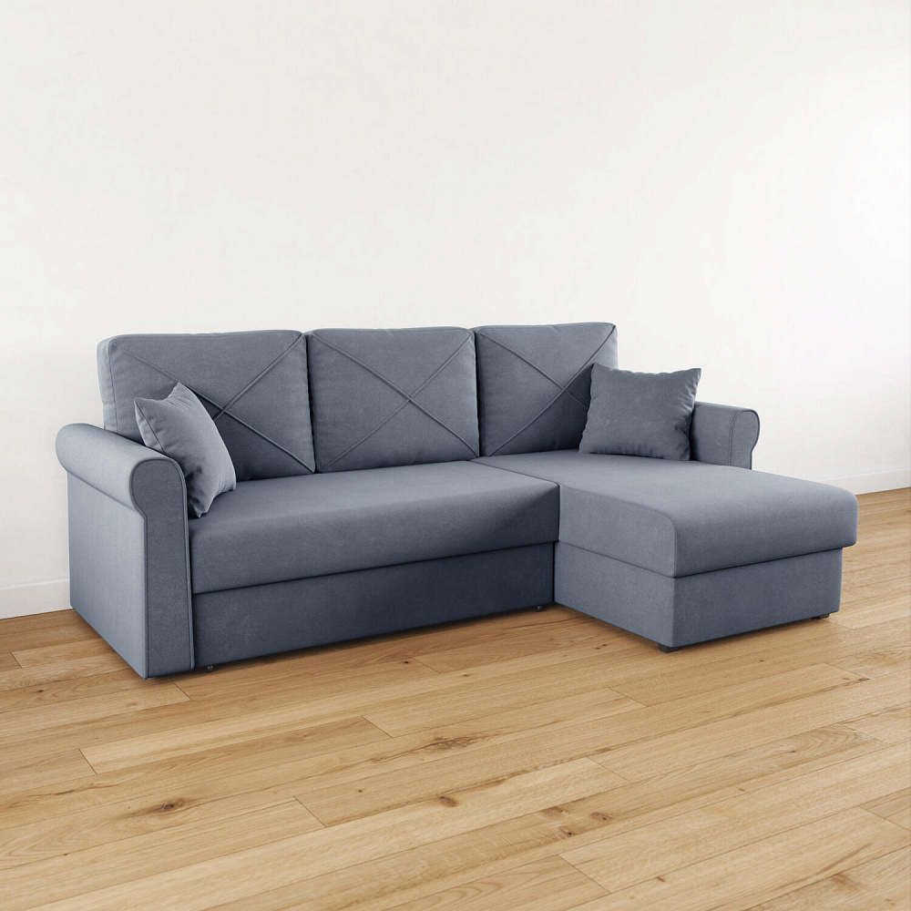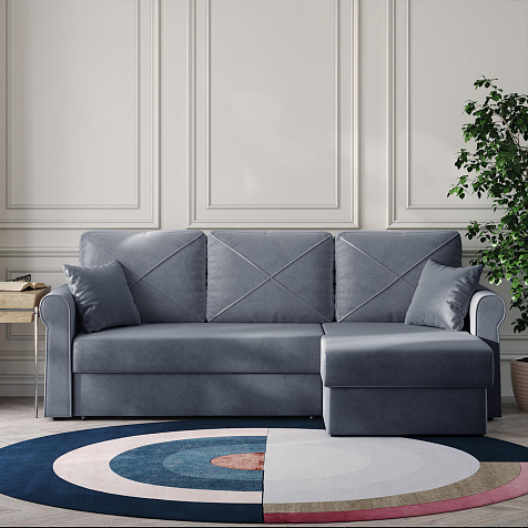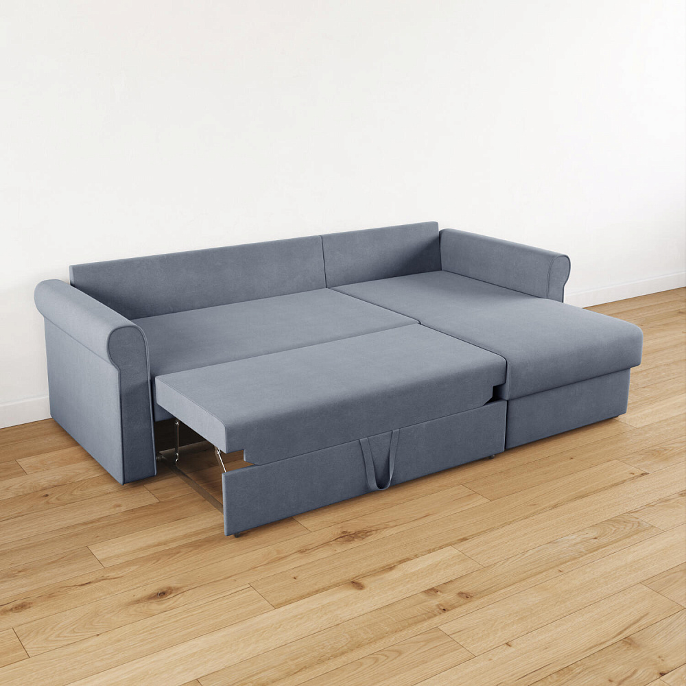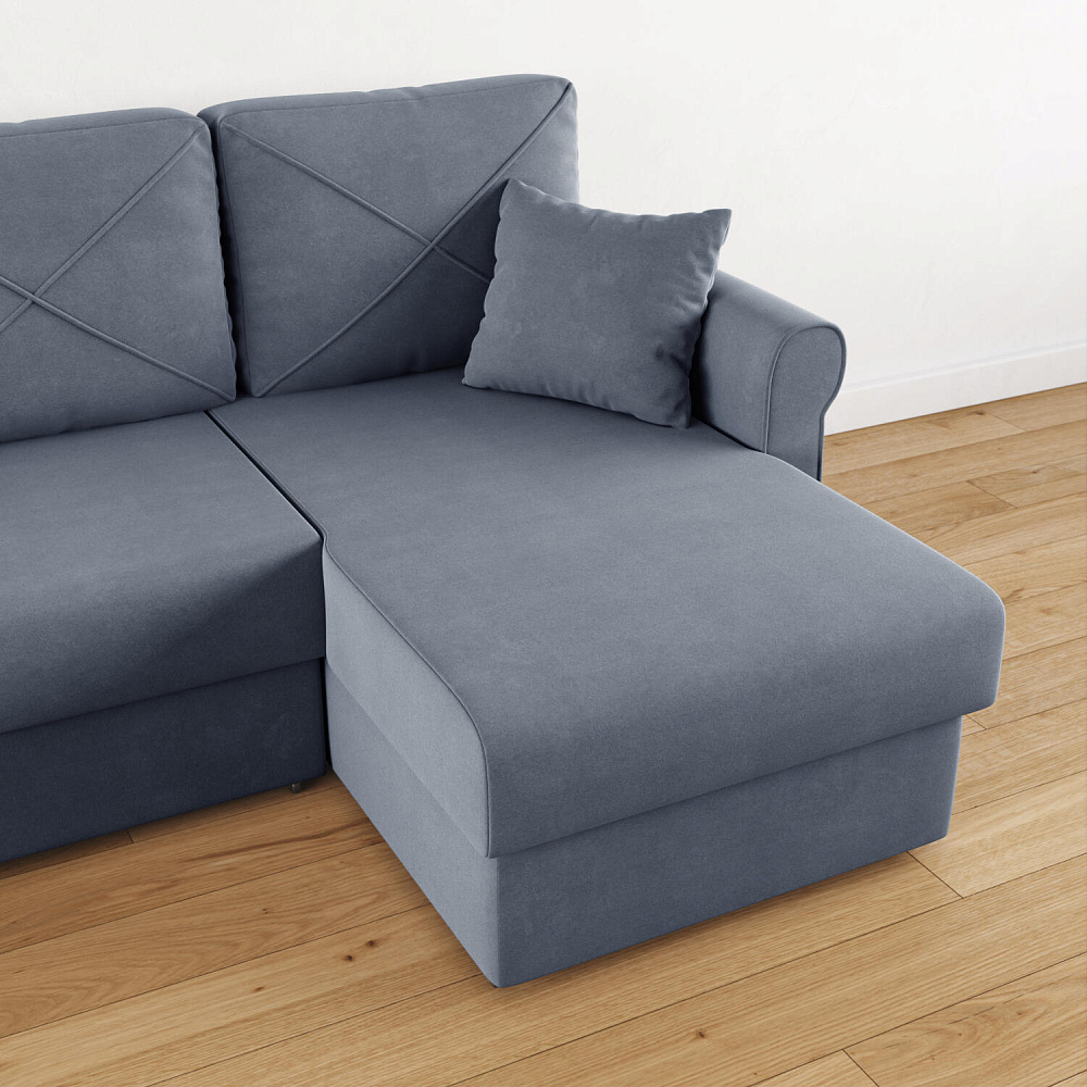 - Вместительный короб. В угловой части дивана скрыт ящик для постельных принадлежностей.