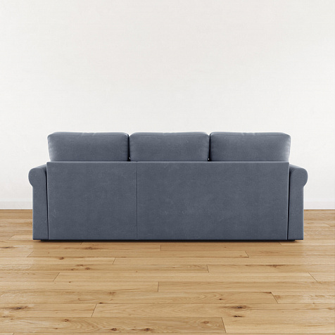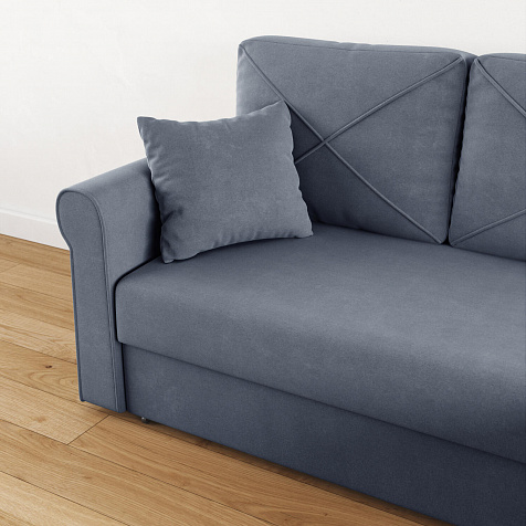 - Обивка из велюра. Диван выполнен в приятной на ощупь ткани, которая пропускает воздух, тянется и устойчива к истиранию.