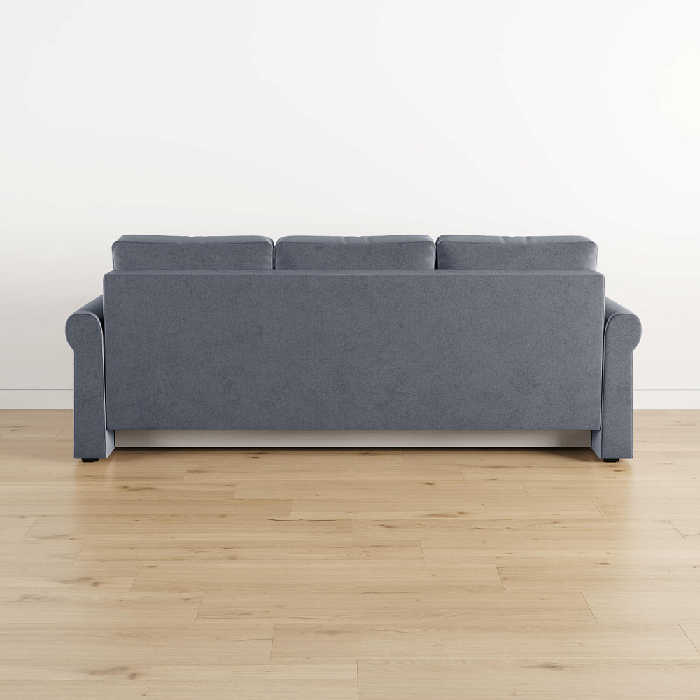 - Механизм трансформации «Еврокнижка». Диван легко раскладывается — достаточно выкатить вперёд сиденье и опустить спинку. Отодвигать диван от стены не требуется.