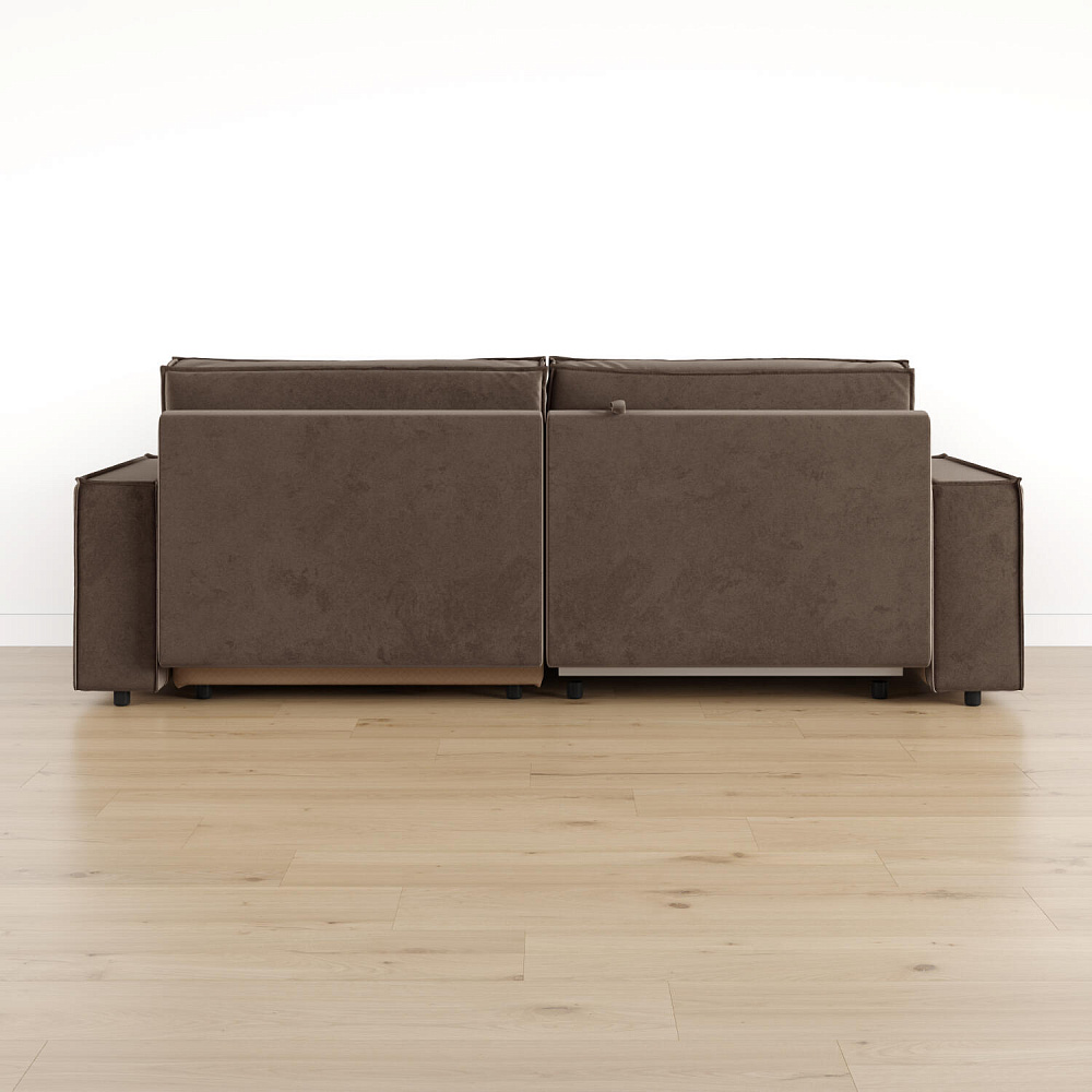 Обратная сторона спинки в обивочной ткани. Диван прекрасно подойдёт для зонирования помещений или расположения в центре комнаты.