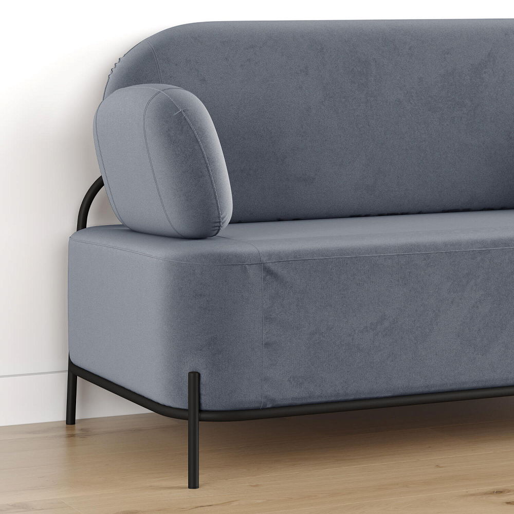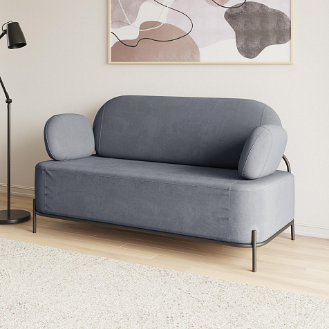 Двухместный диван «Луффи» с подлокотниками — это находка для ценителей оригинальных решений в интерьере. Контрастное сочетание мягких форм и тонких металлических опор поможет создать уютную и легкую зону отдыха. Задняя часть спинки выполнена в обивочной ткани, что позволяет разместить диван в центре комнаты для зонирования пространства.