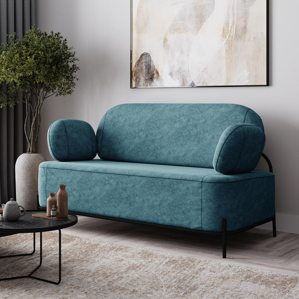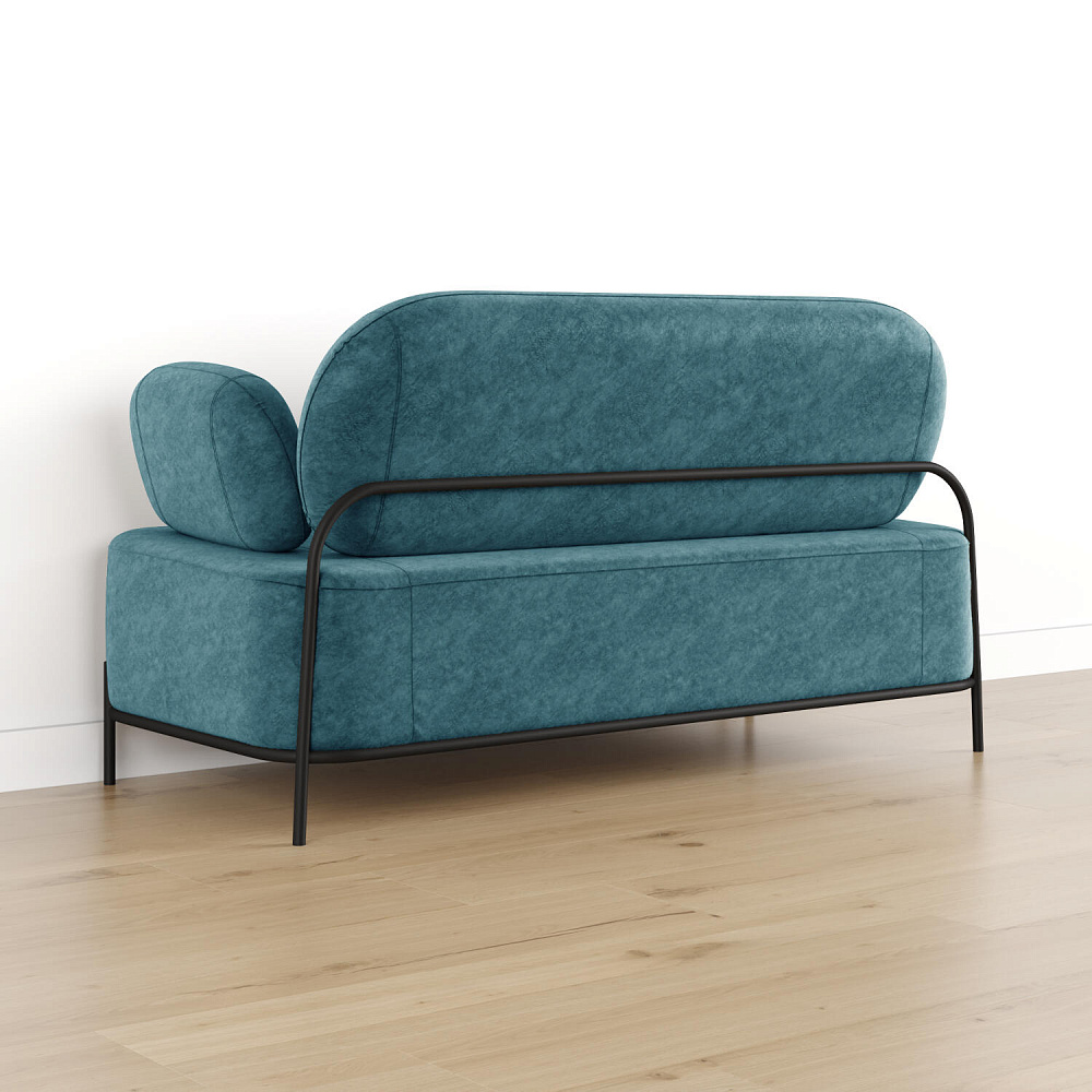 Двухместный диван «Луффи» с подлокотниками — это находка для ценителей оригинальных решений в интерьере. Контрастное сочетание мягких форм и тонких металлических опор поможет создать уютную и легкую зону отдыха. Задняя часть спинки выполнена в обивочной ткани, что позволяет разместить диван в центре комнаты для зонирования пространства.