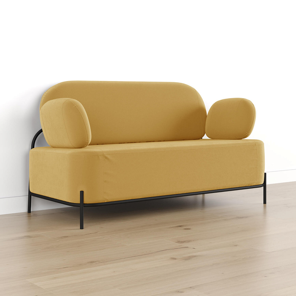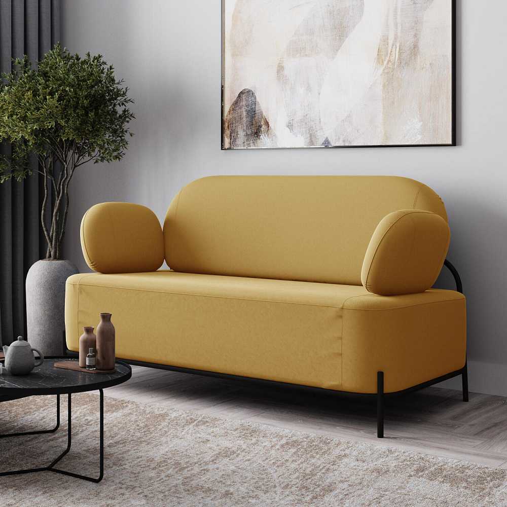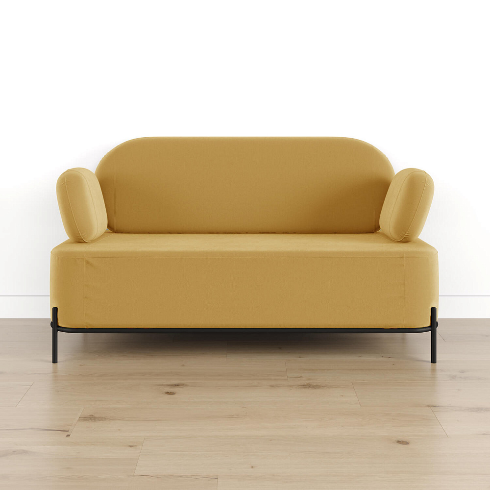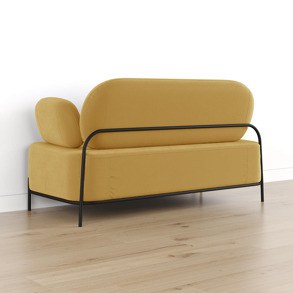 Двухместный диван «Луффи» с подлокотниками — это находка для ценителей оригинальных решений в интерьере. Контрастное сочетание мягких форм и тонких металлических опор поможет создать уютную и легкую зону отдыха. Задняя часть спинки выполнена в обивочной ткани, что позволяет разместить диван в центре комнаты для зонирования пространства.