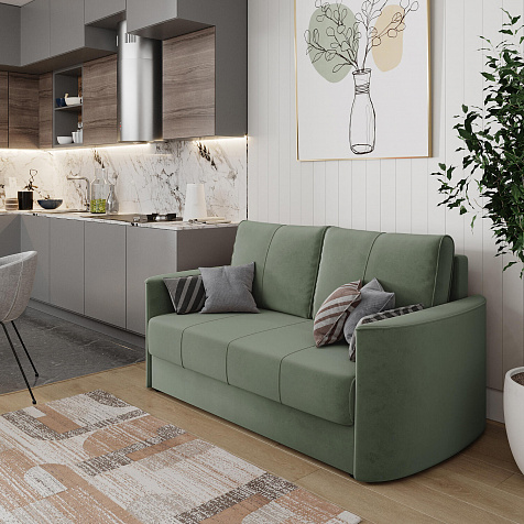 Двухместный диван «Амми» — это идеальное сочетание надёжности, простоты и комфорта. Прямая строчка на сиденье и приспинных подушках создает завершённый образ и придает модели мягкую геометричность. Механизм «Еврокнижка» в сложенном виде поможет сэкономить пространство в комнате и использовать диван для ежедневного сна. Благодаря универсальному дизайну, качественным материалам и эргономичности диван станет главным местом гостиной в современном стиле, сканди или лофт.