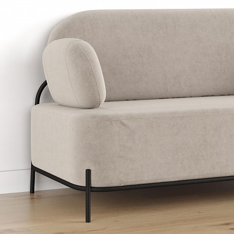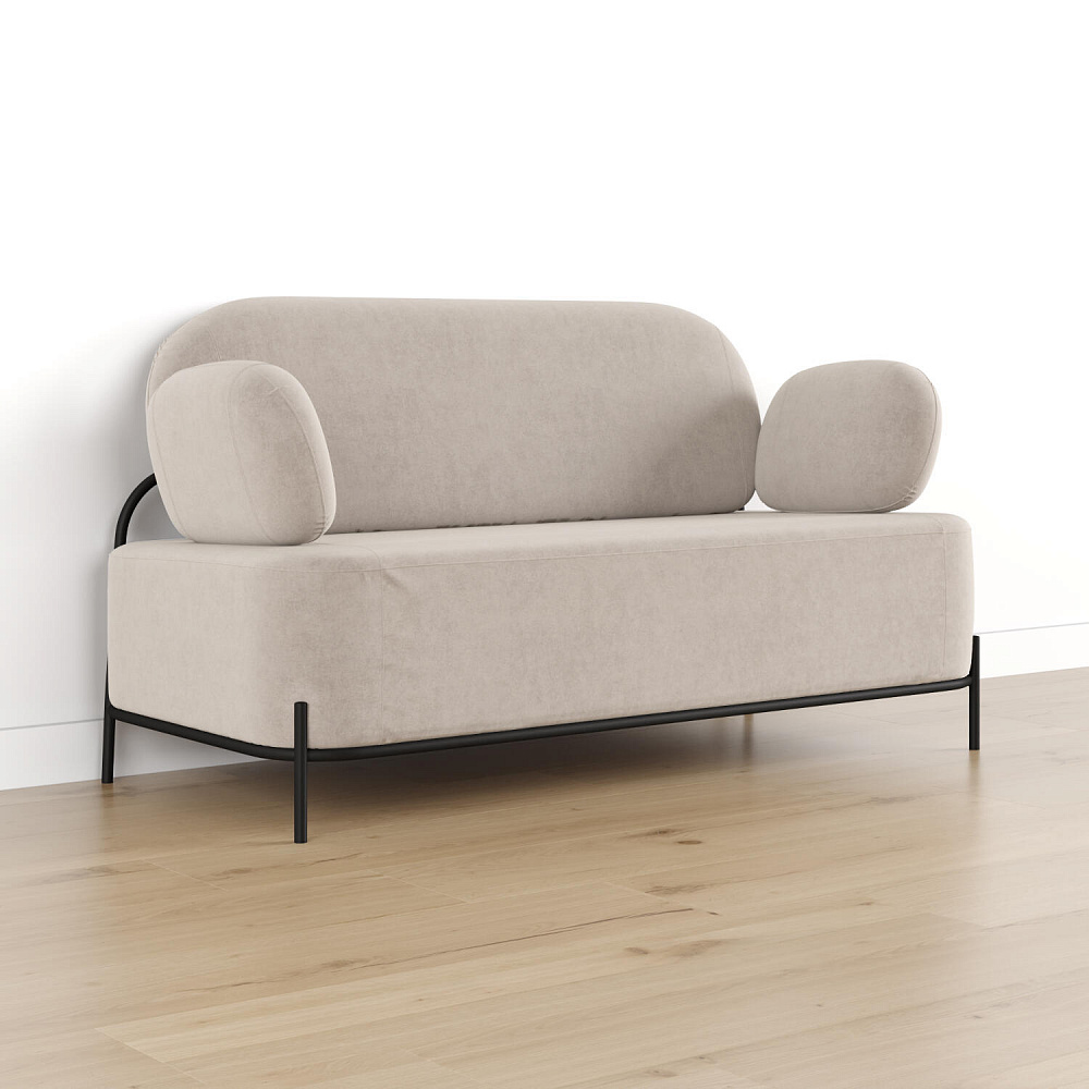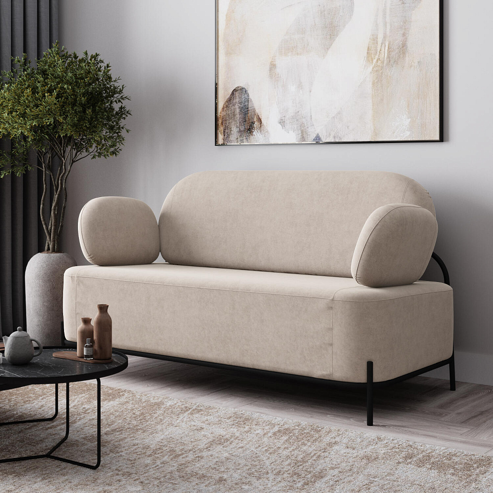 Двухместный диван «Луффи» с подлокотниками — это находка для ценителей оригинальных решений в интерьере. Контрастное сочетание мягких форм и тонких металлических опор поможет создать уютную и легкую зону отдыха. Задняя часть спинки выполнена в обивочной ткани, что позволяет разместить диван в центре комнаты для зонирования пространства.
