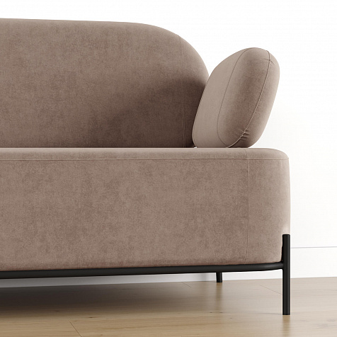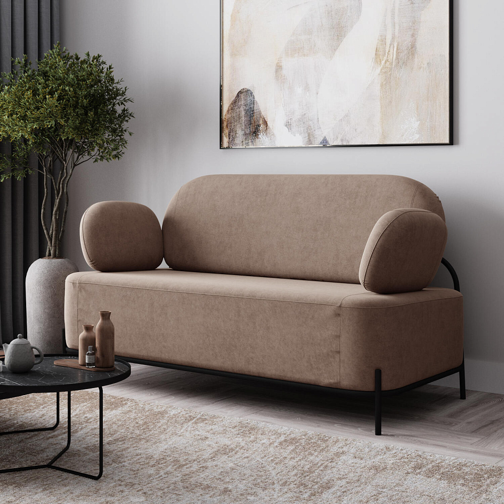 Двухместный диван «Луффи» с подлокотниками — это находка для ценителей оригинальных решений в интерьере. Контрастное сочетание мягких форм и тонких металлических опор поможет создать уютную и легкую зону отдыха. Задняя часть спинки выполнена в обивочной ткани, что позволяет разместить диван в центре комнаты для зонирования пространства.