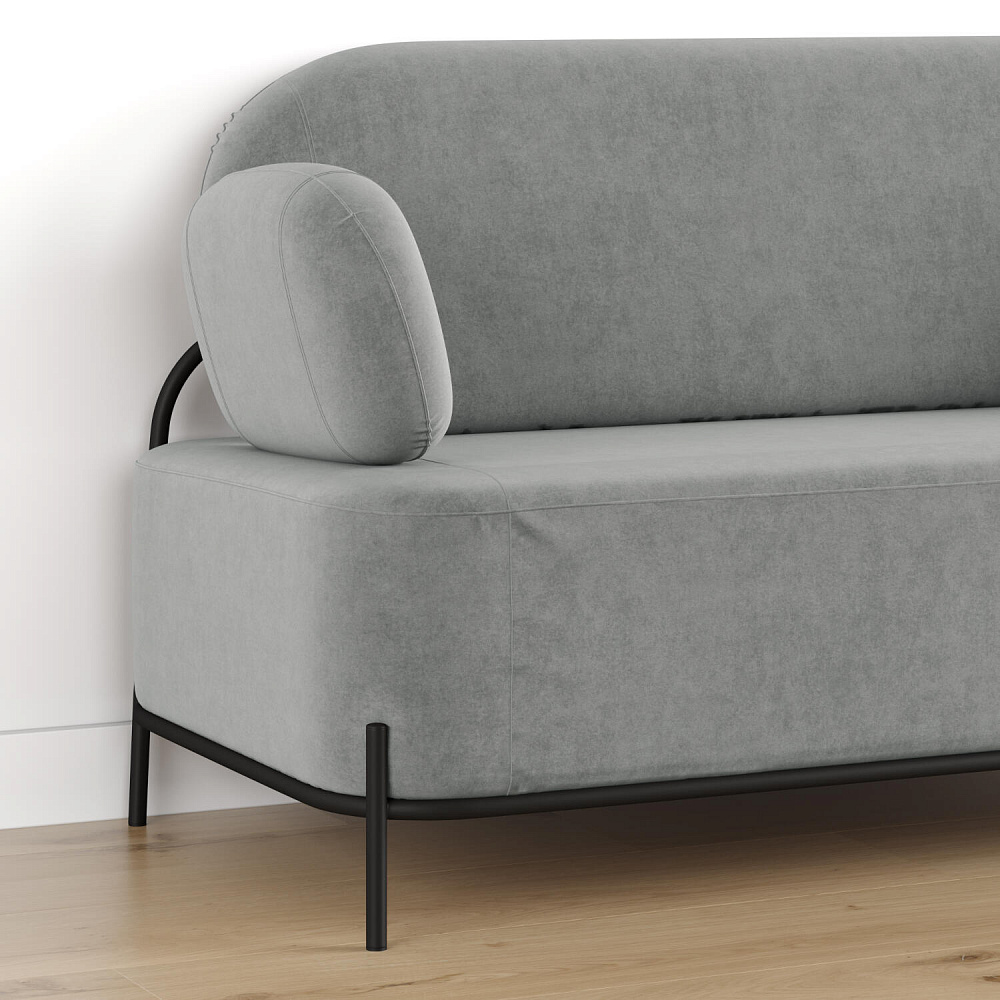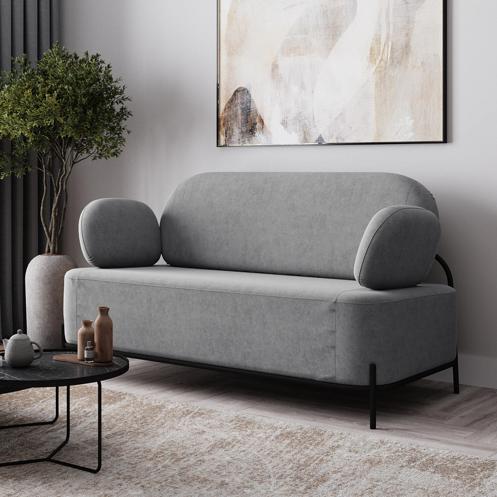 Двухместный диван «Луффи» с подлокотниками — это находка для ценителей оригинальных решений в интерьере. Контрастное сочетание мягких форм и тонких металлических опор поможет создать уютную и легкую зону отдыха. Задняя часть спинки выполнена в обивочной ткани, что позволяет разместить диван в центре комнаты для зонирования пространства.