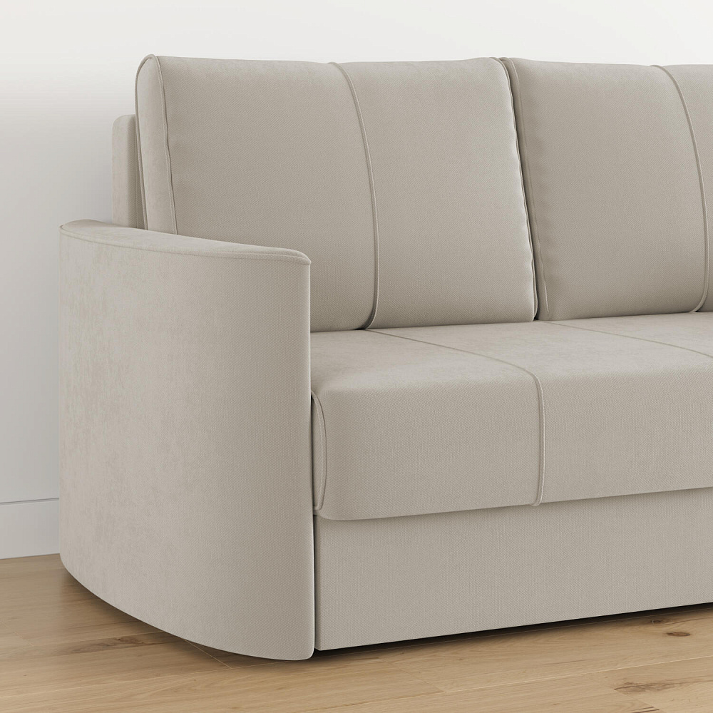 - Механизм трансформации «Еврокнижка». Диван легко раскладывается — достаточно выкатить вперёд сиденье и опустить спинку. Отодвигать диван от стены не требуется.