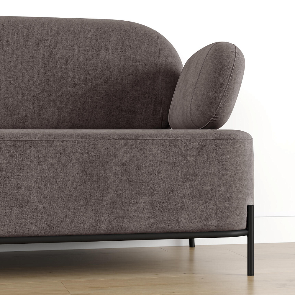 Двухместный диван «Луффи» с подлокотниками — это находка для ценителей оригинальных решений в интерьере. Контрастное сочетание мягких форм и тонких металлических опор поможет создать уютную и легкую зону отдыха. Задняя часть спинки выполнена в обивочной ткани, что позволяет разместить диван в центре комнаты для зонирования пространства.