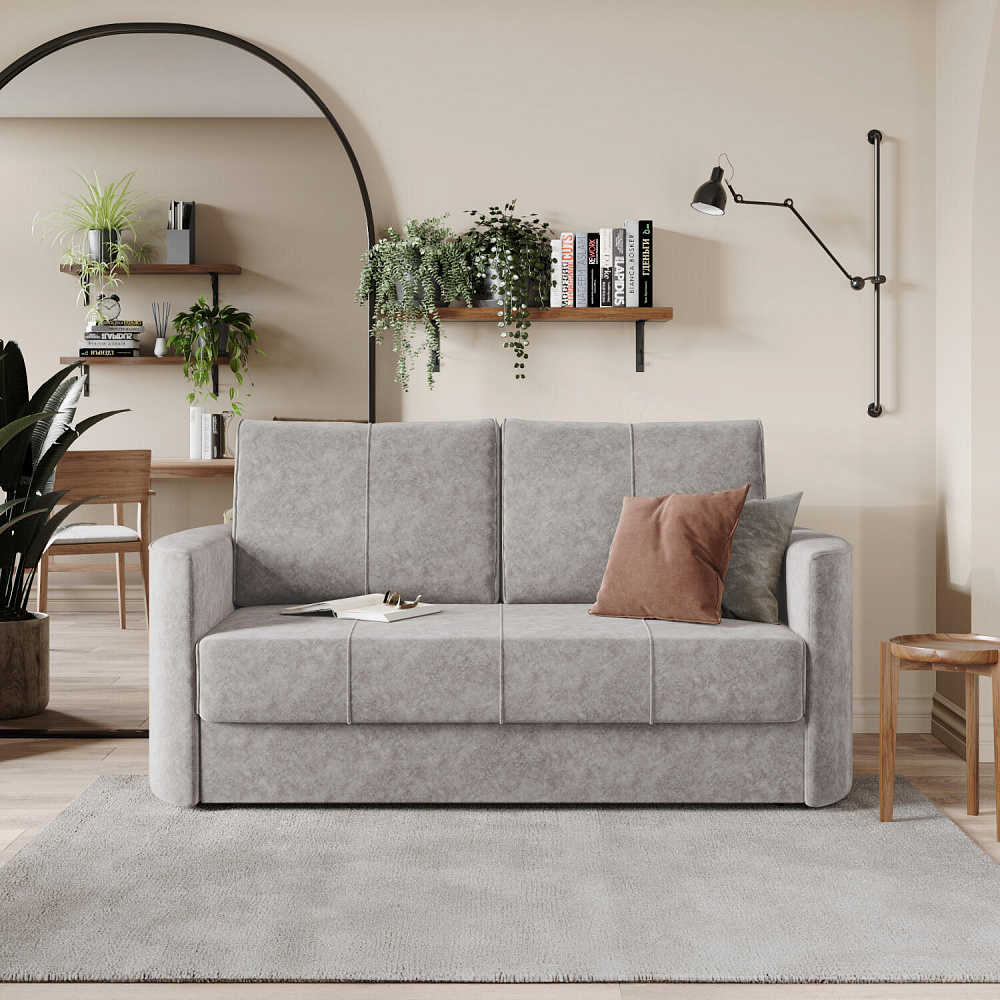 Двухместный диван «Амми» — это идеальное сочетание надёжности, простоты и комфорта. Прямая строчка на сиденье и приспинных подушках создает завершённый образ и придает модели мягкую геометричность. Механизм «Еврокнижка» в сложенном виде поможет сэкономить пространство в комнате и использовать диван для ежедневного сна. Благодаря универсальному дизайну, качественным материалам и эргономичности диван станет главным местом гостиной в современном стиле, сканди или лофт.