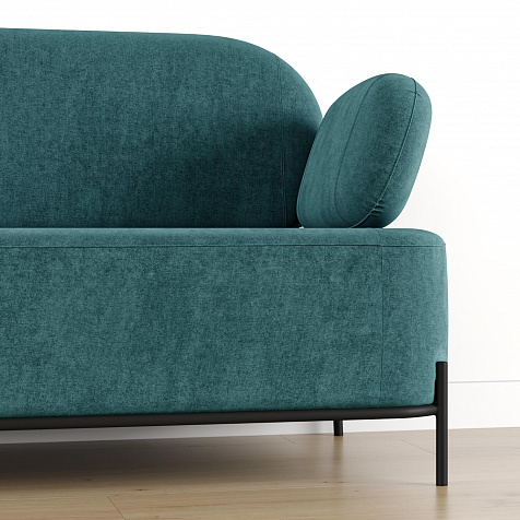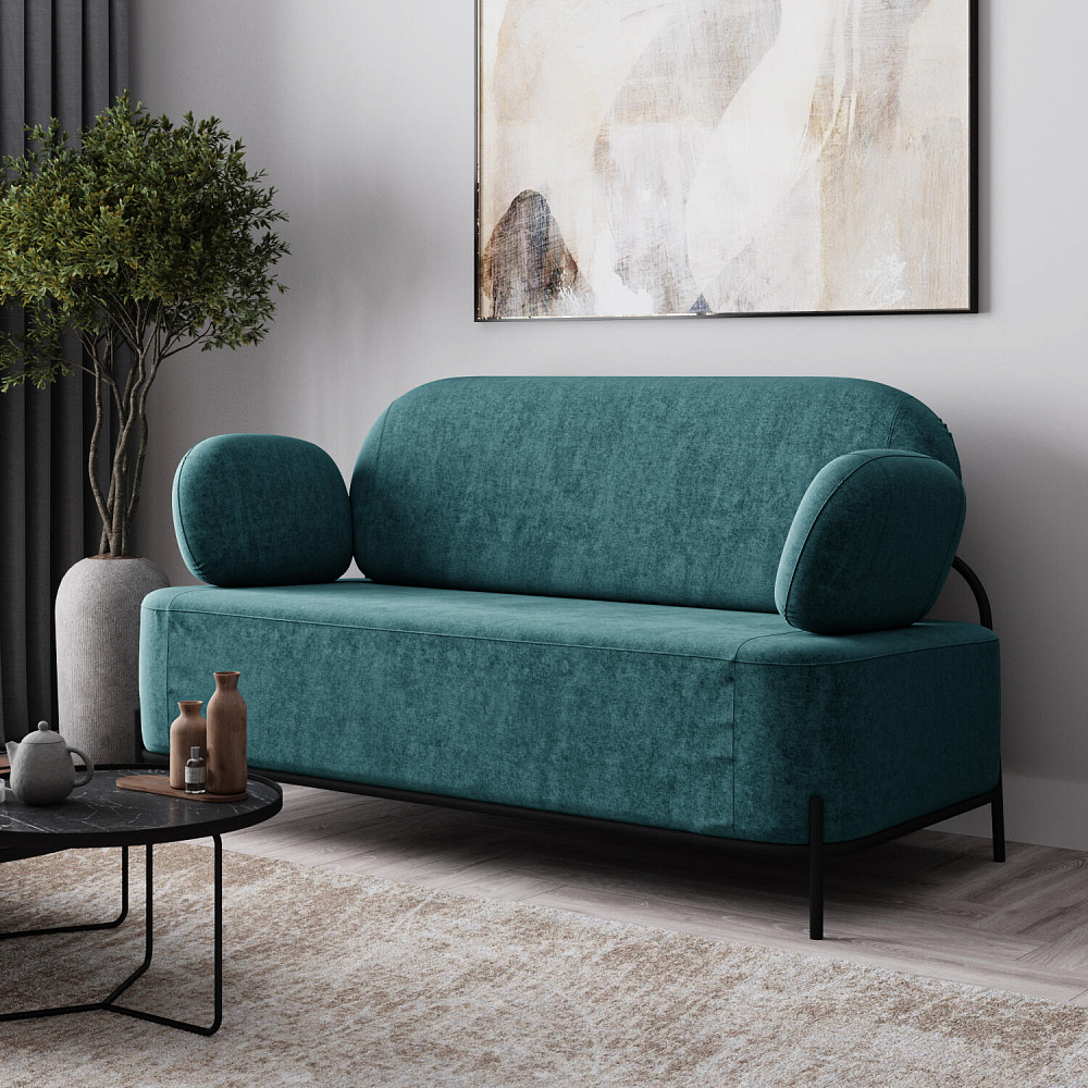 Двухместный диван «Луффи» с подлокотниками — это находка для ценителей оригинальных решений в интерьере. Контрастное сочетание мягких форм и тонких металлических опор поможет создать уютную и легкую зону отдыха. Задняя часть спинки выполнена в обивочной ткани, что позволяет разместить диван в центре комнаты для зонирования пространства.