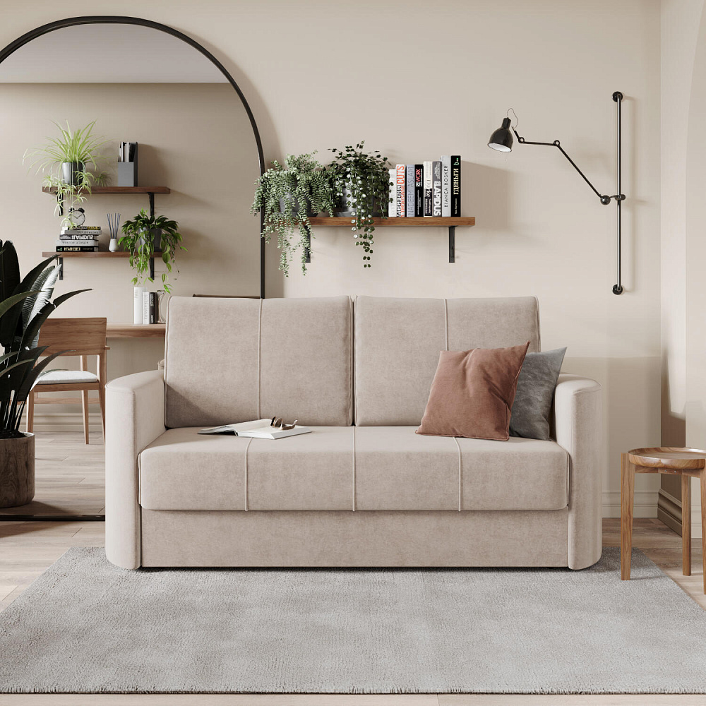 Двухместный диван «Амми» — это идеальное сочетание надёжности, простоты и комфорта. Прямая строчка на сиденье и приспинных подушках создает завершённый образ и придает модели мягкую геометричность. Механизм «Еврокнижка» в сложенном виде поможет сэкономить пространство в комнате и использовать диван для ежедневного сна. Благодаря универсальному дизайну, качественным материалам и эргономичности диван станет главным местом гостиной в современном стиле, сканди или лофт.