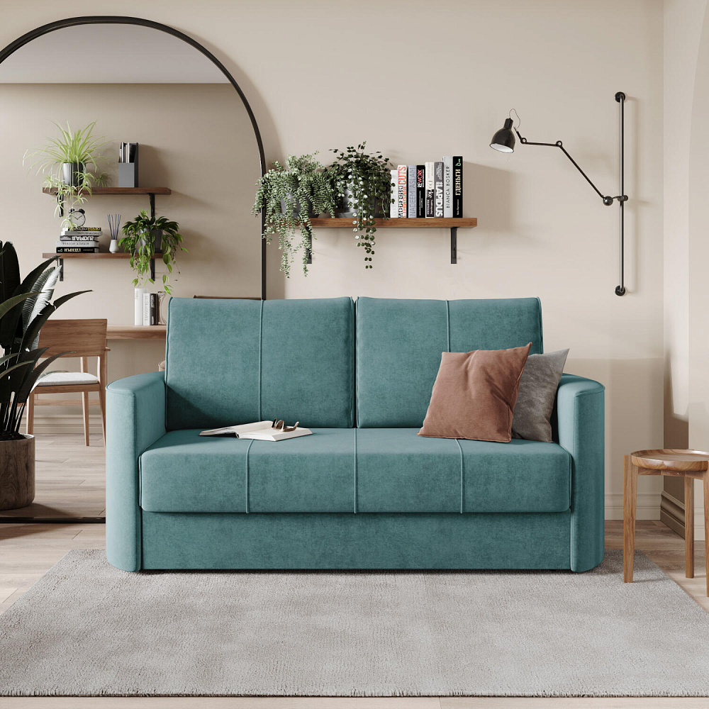 Двухместный диван «Амми» — это идеальное сочетание надёжности, простоты и комфорта. Прямая строчка на сиденье и приспинных подушках создает завершённый образ и придает модели мягкую геометричность. Механизм «Еврокнижка» в сложенном виде поможет сэкономить пространство в комнате и использовать диван для ежедневного сна. Благодаря универсальному дизайну, качественным материалам и эргономичности диван станет главным местом гостиной в современном стиле, сканди или лофт.