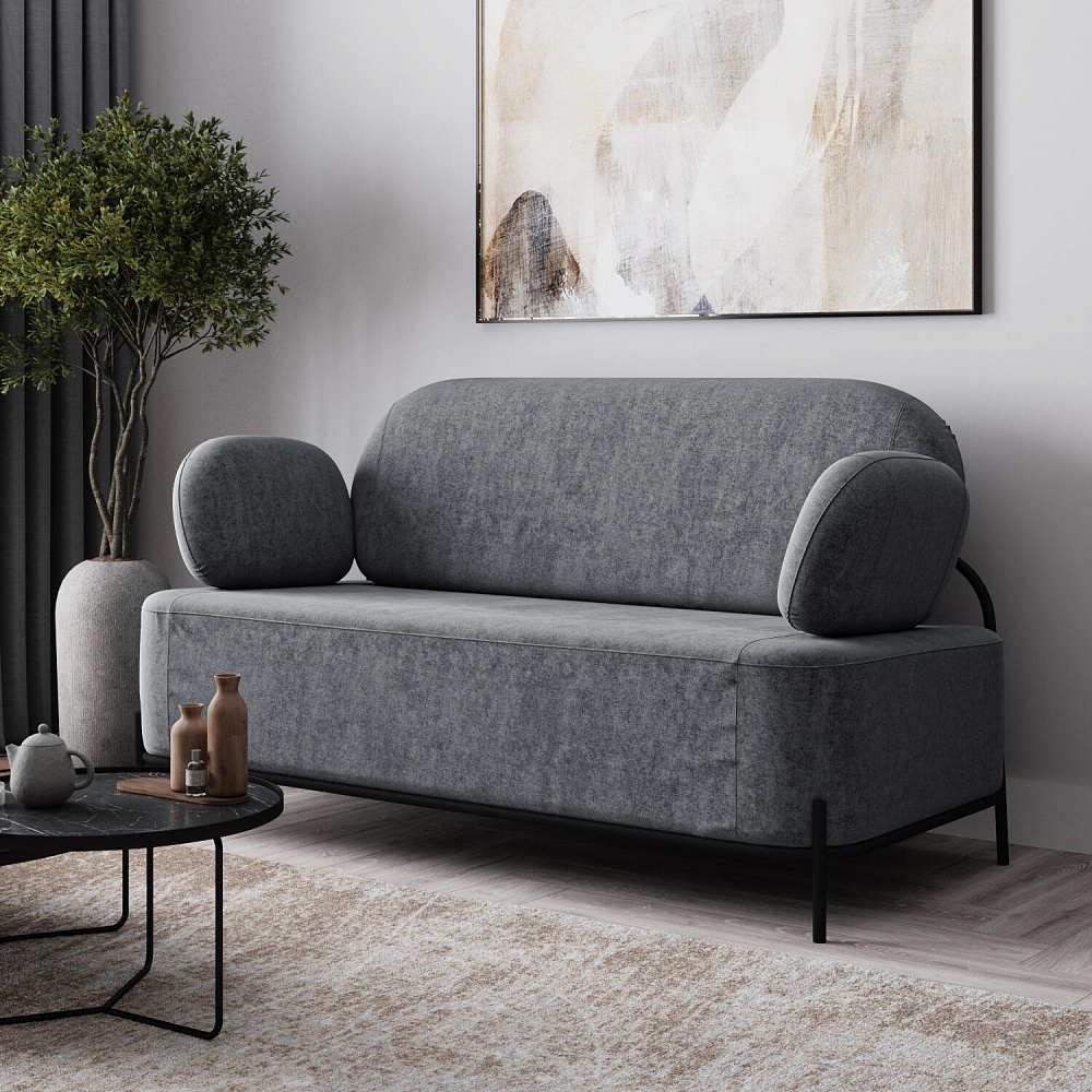 Двухместный диван «Луффи» с подлокотниками — это находка для ценителей оригинальных решений в интерьере. Контрастное сочетание мягких форм и тонких металлических опор поможет создать уютную и легкую зону отдыха. Задняя часть спинки выполнена в обивочной ткани, что позволяет разместить диван в центре комнаты для зонирования пространства.