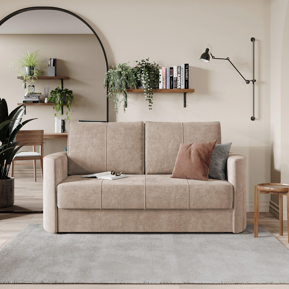 Двухместный диван «Амми» — это идеальное сочетание надёжности, простоты и комфорта. Прямая строчка на сиденье и приспинных подушках создает завершённый образ и придает модели мягкую геометричность. Механизм «Еврокнижка» в сложенном виде поможет сэкономить пространство в комнате и использовать диван для ежедневного сна. Благодаря универсальному дизайну, качественным материалам и эргономичности диван станет главным местом гостиной в современном стиле, сканди или лофт.