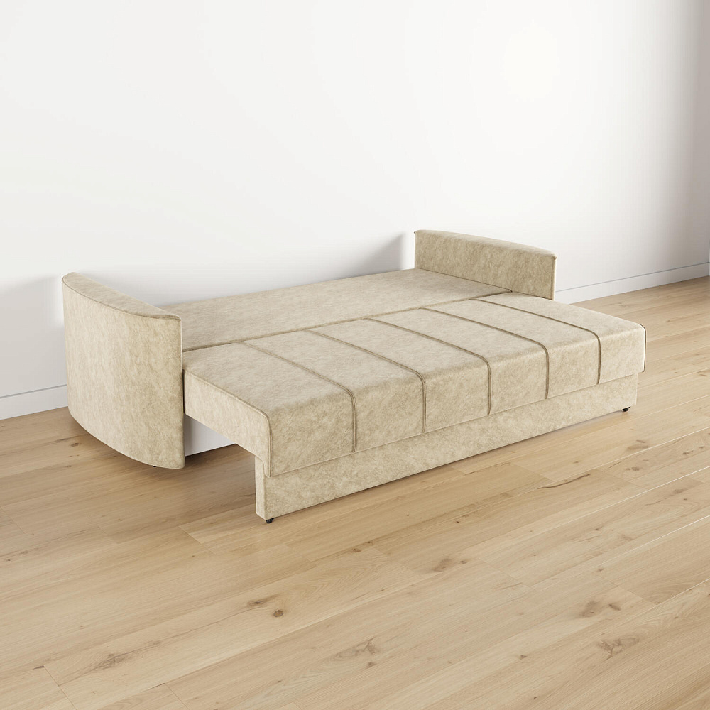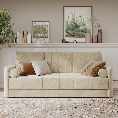 Диван «Амми» — это идеальное сочетание надёжности, простоты и комфорта. Прямая строчка на сиденье и приспинных подушках создает завершённый образ и придает модели мягкую геометричность. Механизм «Еврокнижка» в сложенном виде поможет сэкономить пространство в комнате и использовать диван для ежедневного сна. Благодаря универсальному дизайну, качественным материалам и эргономичности диван станет главным местом гостиной в современном стиле, сканди или лофт.