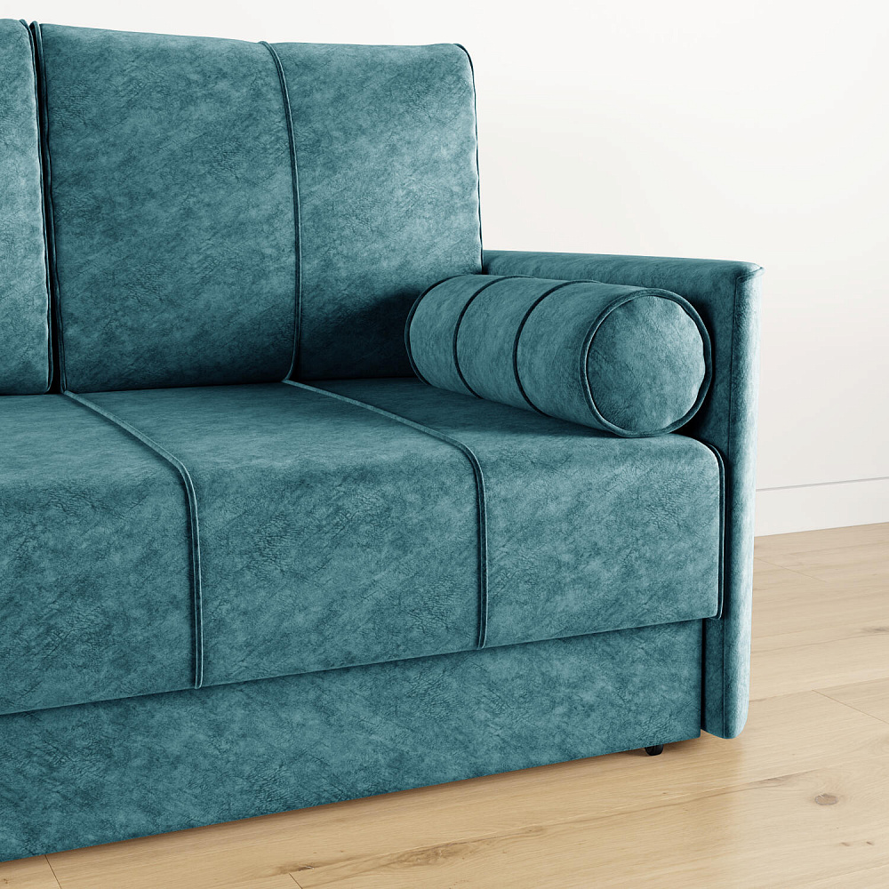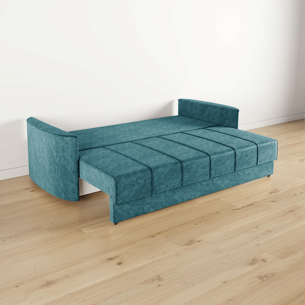 - Механизм трансформации «Еврокнижка». Диван легко раскладывается — достаточно выкатить вперёд сиденье и опустить спинку. Отодвигать диван от стены не требуется.