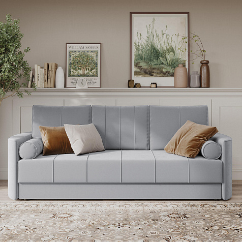 Диван «Амми» — это идеальное сочетание надёжности, простоты и комфорта. Прямая строчка на сиденье и приспинных подушках создает завершённый образ и придает модели мягкую геометричность. Механизм «Еврокнижка» в сложенном виде поможет сэкономить пространство в комнате и использовать диван для ежедневного сна. Благодаря универсальному дизайну, качественным материалам и эргономичности диван станет главным местом гостиной в современном стиле, сканди или лофт.