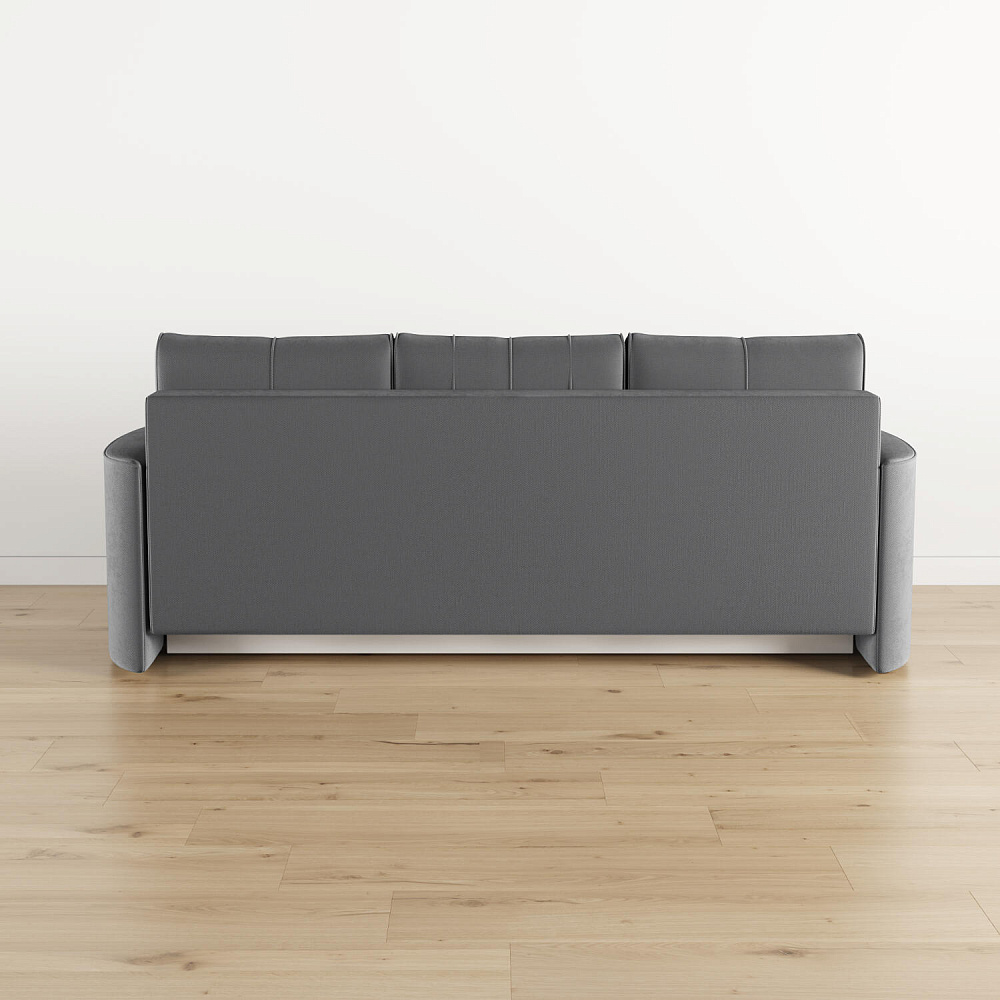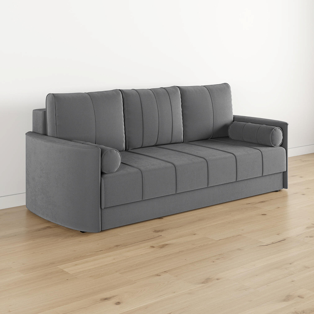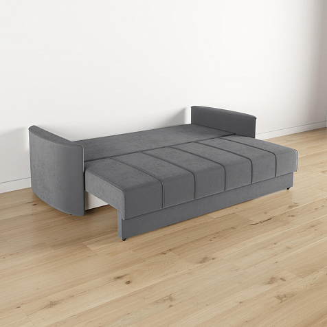- Механизм трансформации «Еврокнижка». Диван легко раскладывается — достаточно выкатить вперёд сиденье и опустить спинку. Отодвигать диван от стены не требуется.