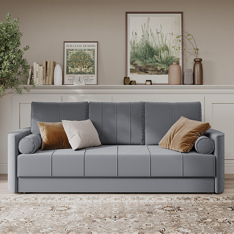 Диван «Амми» — это идеальное сочетание надёжности, простоты и комфорта. Прямая строчка на сиденье и приспинных подушках создает завершённый образ и придает модели мягкую геометричность. Механизм «Еврокнижка» в сложенном виде поможет сэкономить пространство в комнате и использовать диван для ежедневного сна. Благодаря универсальному дизайну, качественным материалам и эргономичности диван станет главным местом гостиной в современном стиле, сканди или лофт.