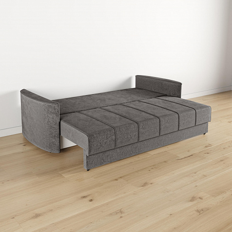 - Механизм трансформации «Еврокнижка». Диван легко раскладывается — достаточно выкатить вперёд сиденье и опустить спинку. Отодвигать диван от стены не требуется.