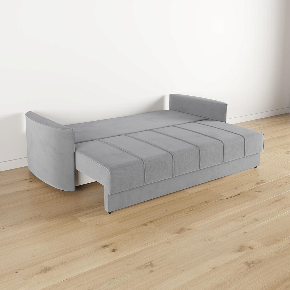 - Механизм трансформации «Еврокнижка». Диван легко раскладывается — достаточно выкатить вперёд сиденье и опустить спинку. Отодвигать диван от стены не требуется.