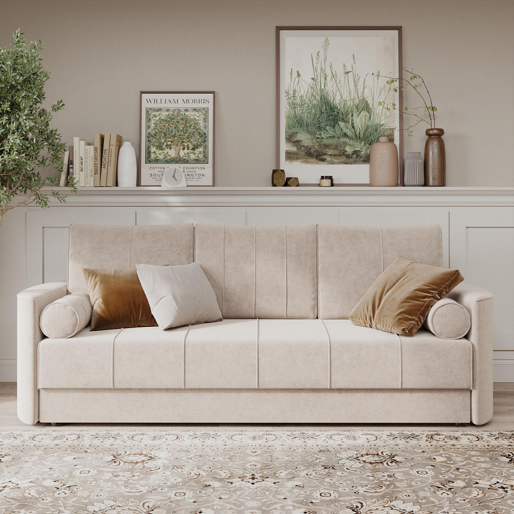 Диван «Амми» — это идеальное сочетание надёжности, простоты и комфорта. Прямая строчка на сиденье и приспинных подушках создает завершённый образ и придает модели мягкую геометричность. Механизм «Еврокнижка» в сложенном виде поможет сэкономить пространство в комнате и использовать диван для ежедневного сна. Благодаря универсальному дизайну, качественным материалам и эргономичности диван станет главным местом гостиной в современном стиле, сканди или лофт.
