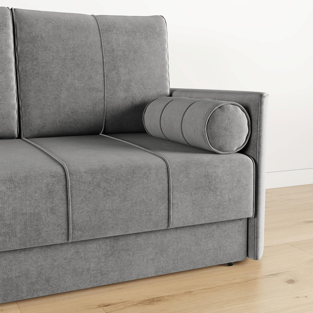 - Механизм трансформации «Еврокнижка». Диван легко раскладывается — достаточно выкатить вперёд сиденье и опустить спинку. Отодвигать диван от стены не требуется.