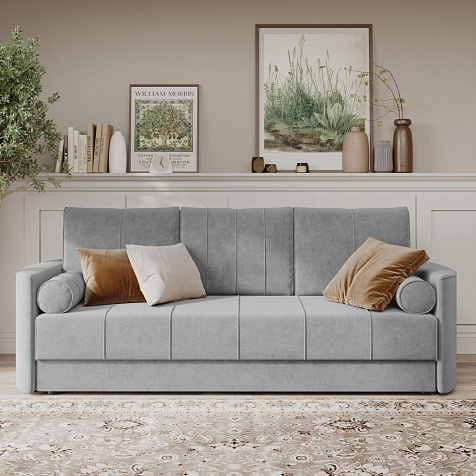 Диван «Амми» — это идеальное сочетание надёжности, простоты и комфорта. Прямая строчка на сиденье и приспинных подушках создает завершённый образ и придает модели мягкую геометричность. Механизм «Еврокнижка» в сложенном виде поможет сэкономить пространство в комнате и использовать диван для ежедневного сна. Благодаря универсальному дизайну, качественным материалам и эргономичности диван станет главным местом гостиной в современном стиле, сканди или лофт.