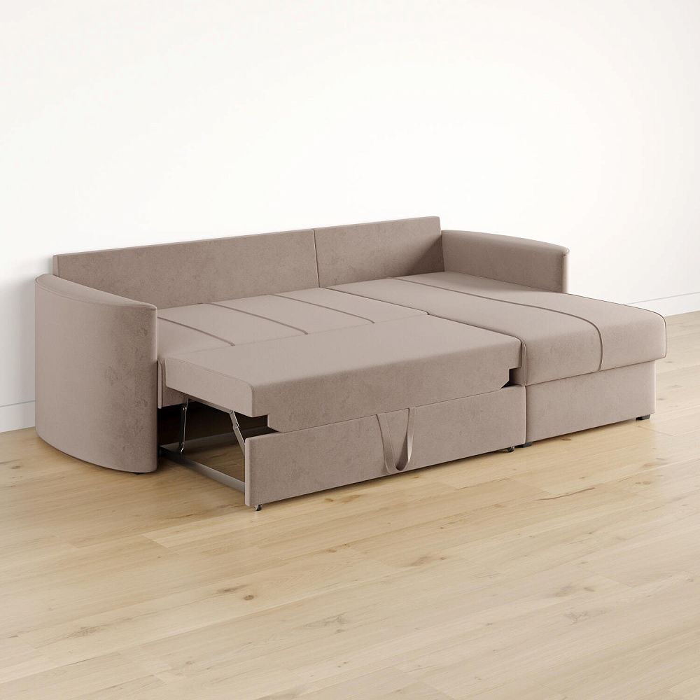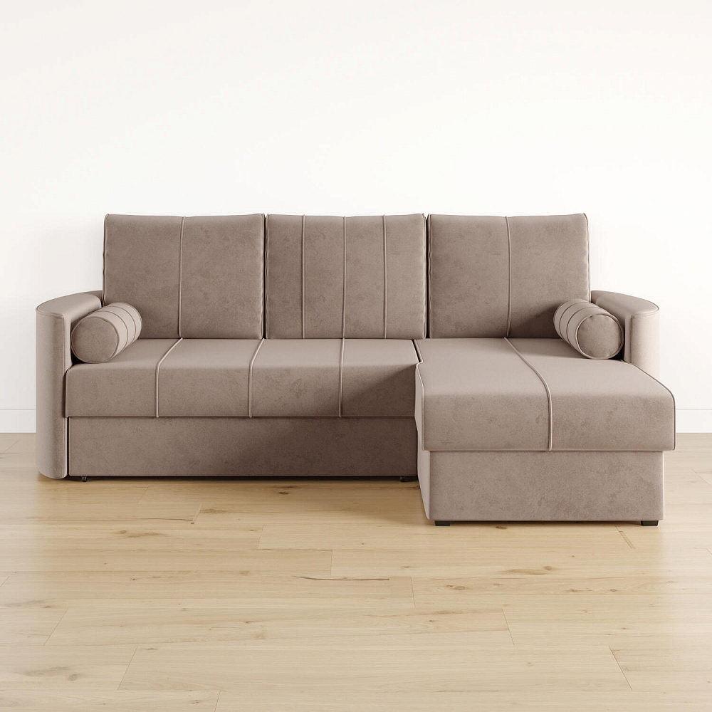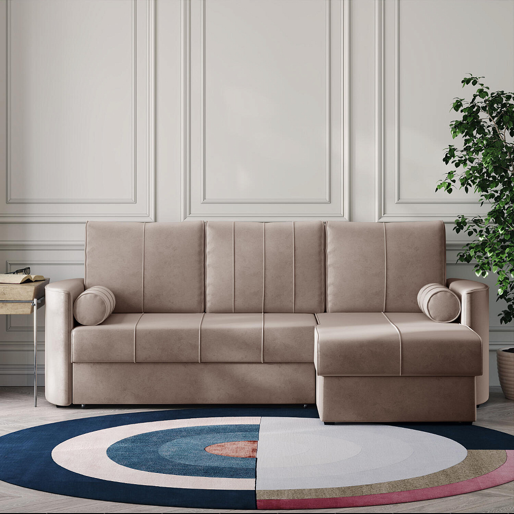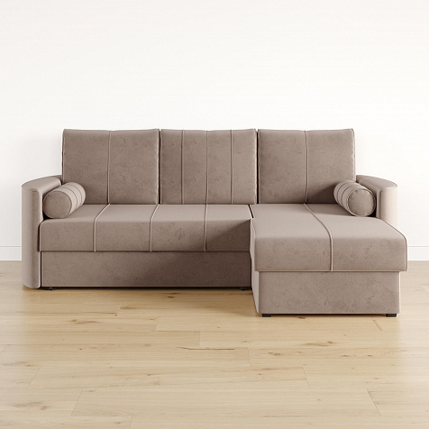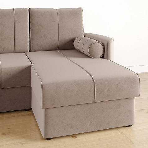 Угловой диван «Амми» — это идеальное сочетание надёжности, простоты и комфорта. Прямая строчка на сиденье и приспинных подушках создает завершённый образ и придает модели мягкую геометричность. Механизм «Дельфин» в сложенном виде поможет сэкономить пространство в комнате и использовать диван для ежедневного сна. Благодаря универсальному дизайну, качественным материалам и эргономичности диван станет главным местом гостиной в современном стиле, сканди или лофт.