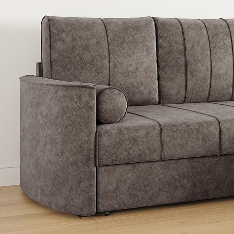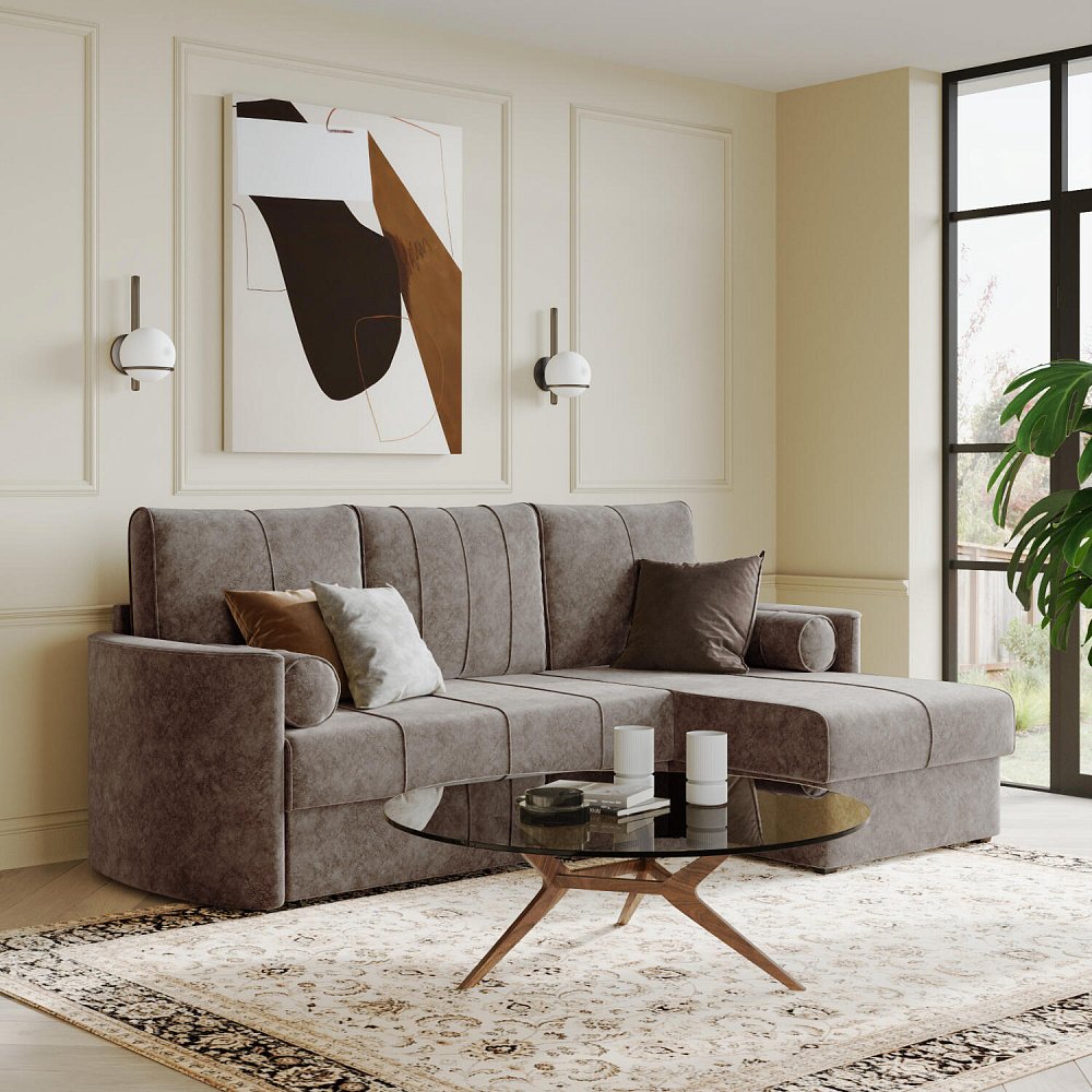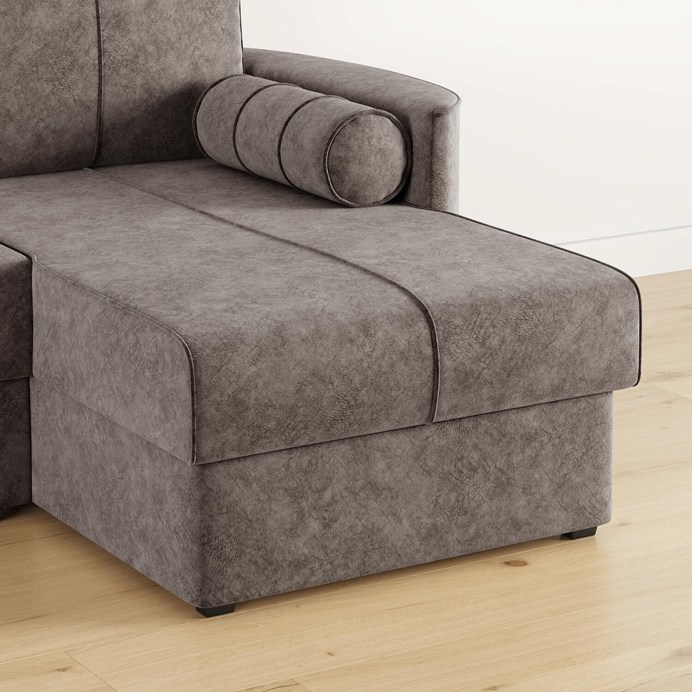 Угловой диван «Амми» — это идеальное сочетание надёжности, простоты и комфорта. Прямая строчка на сиденье и приспинных подушках создает завершённый образ и придает модели мягкую геометричность. Механизм «Дельфин» в сложенном виде поможет сэкономить пространство в комнате и использовать диван для ежедневного сна. Благодаря универсальному дизайну, качественным материалам и эргономичности диван станет главным местом гостиной в современном стиле, сканди или лофт.