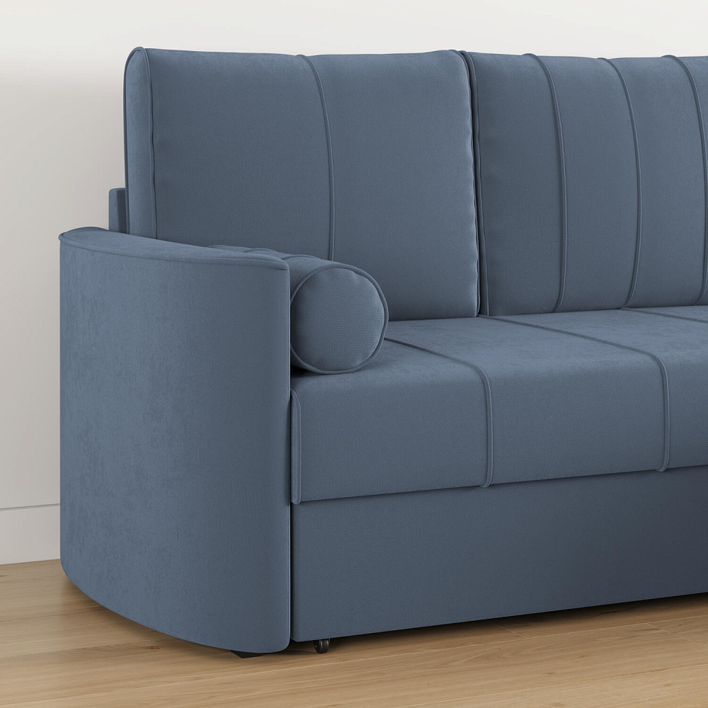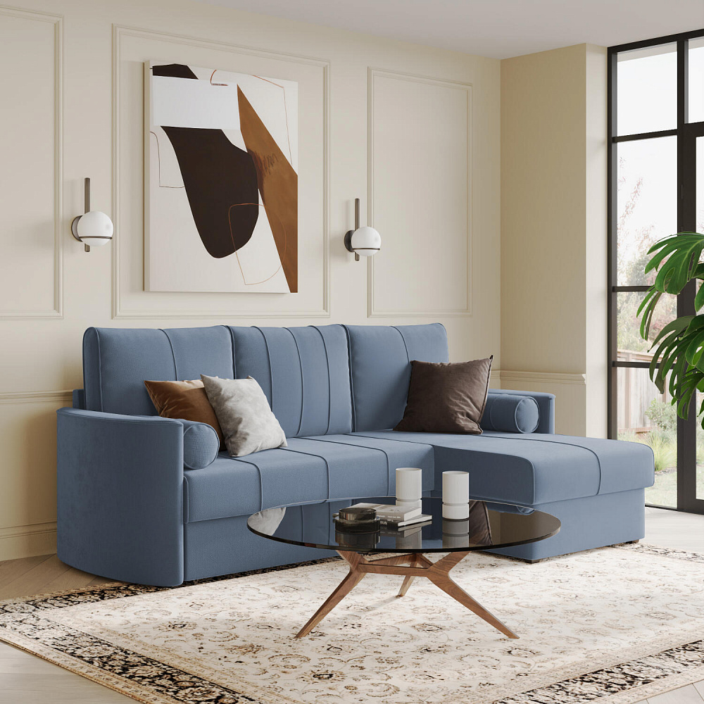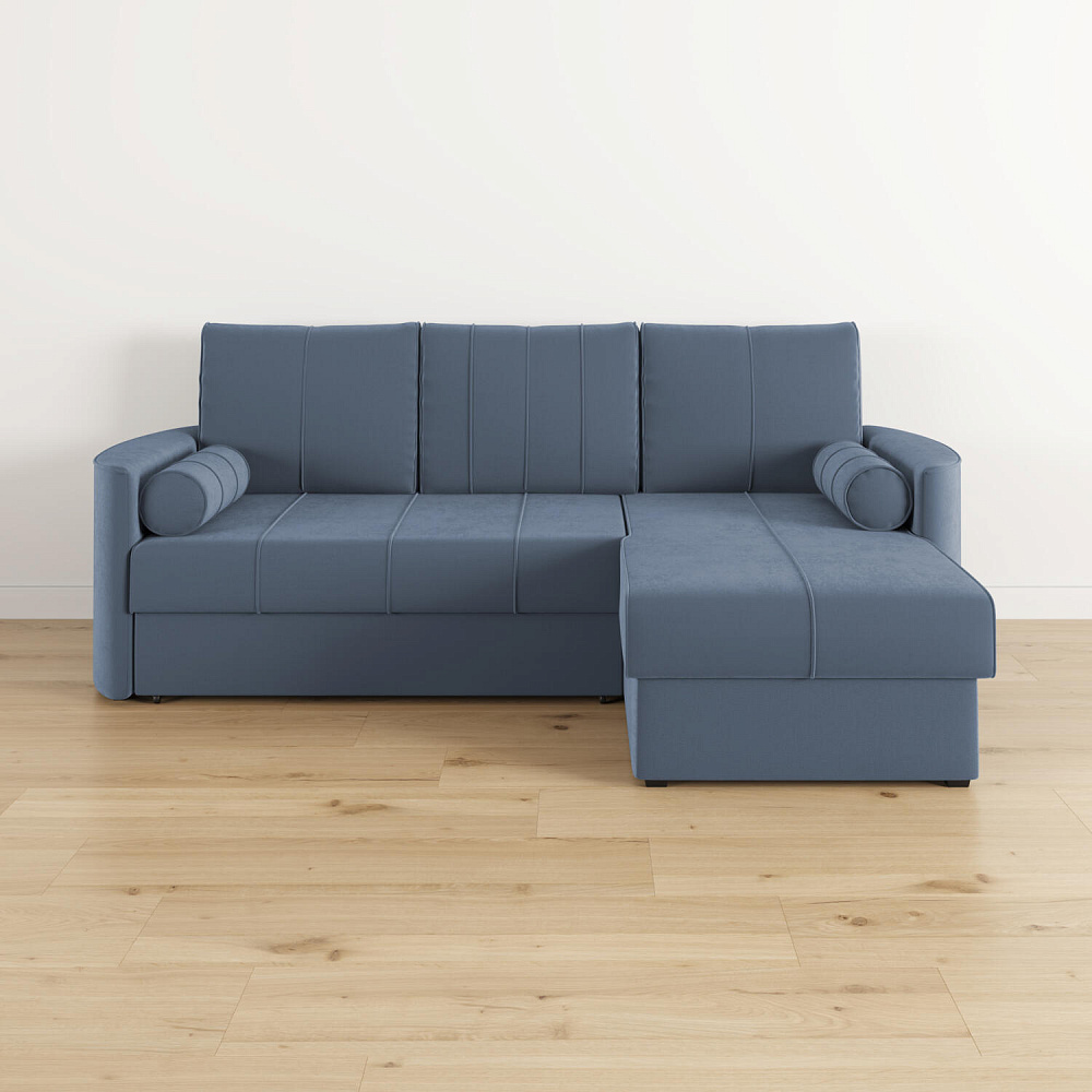 Угловой диван «Амми» — это идеальное сочетание надёжности, простоты и комфорта. Прямая строчка на сиденье и приспинных подушках создает завершённый образ и придает модели мягкую геометричность. Механизм «Дельфин» в сложенном виде поможет сэкономить пространство в комнате и использовать диван для ежедневного сна. Благодаря универсальному дизайну, качественным материалам и эргономичности диван станет главным местом гостиной в современном стиле, сканди или лофт.