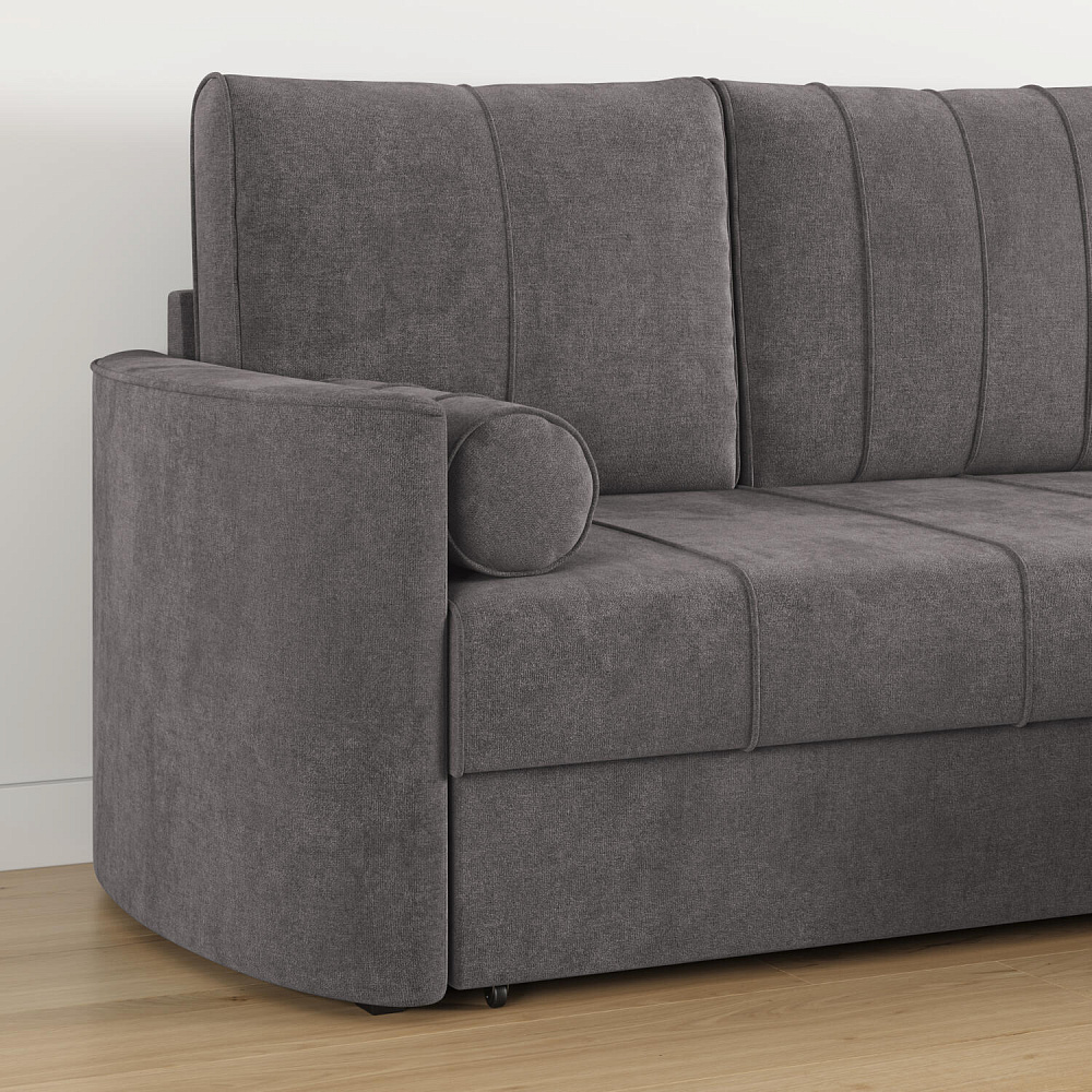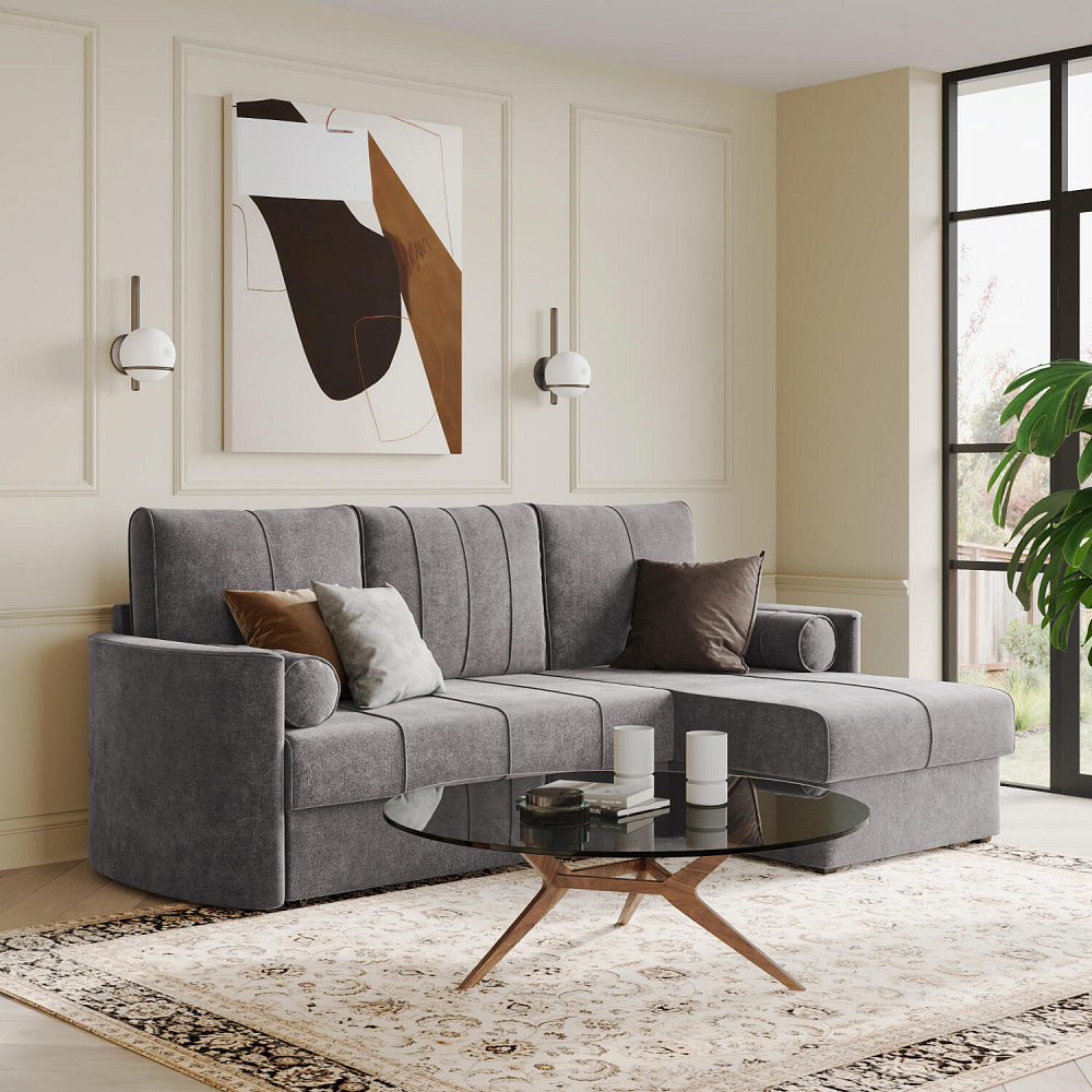 Угловой диван «Амми» — это идеальное сочетание надёжности, простоты и комфорта. Прямая строчка на сиденье и приспинных подушках создает завершённый образ и придает модели мягкую геометричность. Механизм «Дельфин» в сложенном виде поможет сэкономить пространство в комнате и использовать диван для ежедневного сна. Благодаря универсальному дизайну, качественным материалам и эргономичности диван станет главным местом гостиной в современном стиле, сканди или лофт.