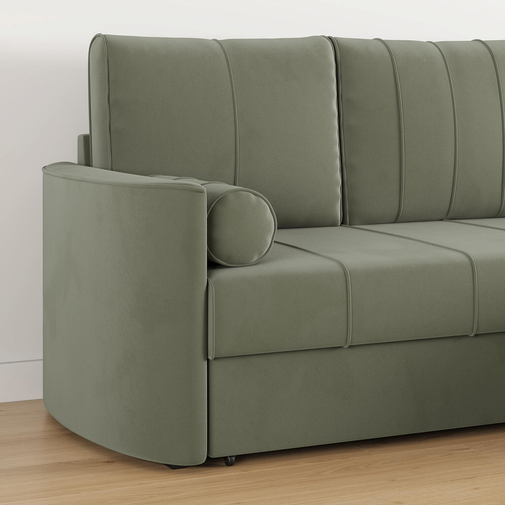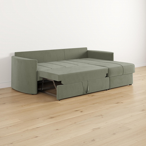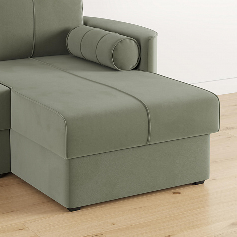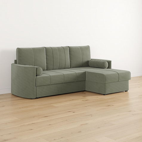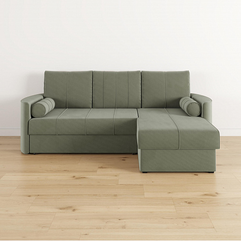 Угловой диван «Амми» — это идеальное сочетание надёжности, простоты и комфорта. Прямая строчка на сиденье и приспинных подушках создает завершённый образ и придает модели мягкую геометричность. Механизм «Дельфин» в сложенном виде поможет сэкономить пространство в комнате и использовать диван для ежедневного сна. Благодаря универсальному дизайну, качественным материалам и эргономичности диван станет главным местом гостиной в современном стиле, сканди или лофт.