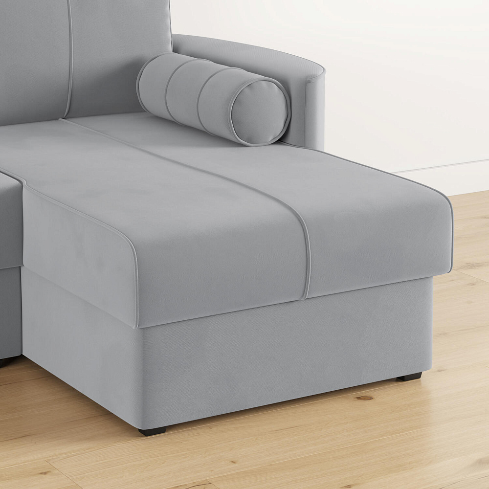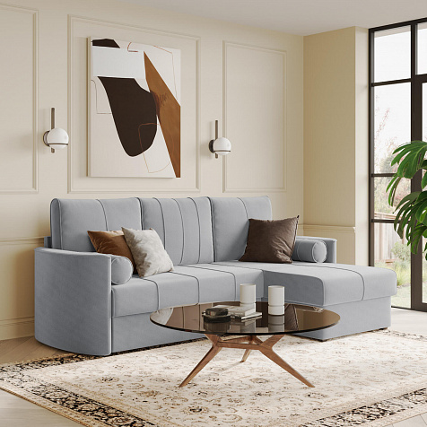Угловой диван «Амми» — это идеальное сочетание надёжности, простоты и комфорта. Прямая строчка на сиденье и приспинных подушках создает завершённый образ и придает модели мягкую геометричность. Механизм «Дельфин» в сложенном виде поможет сэкономить пространство в комнате и использовать диван для ежедневного сна. Благодаря универсальному дизайну, качественным материалам и эргономичности диван станет главным местом гостиной в современном стиле, сканди или лофт.