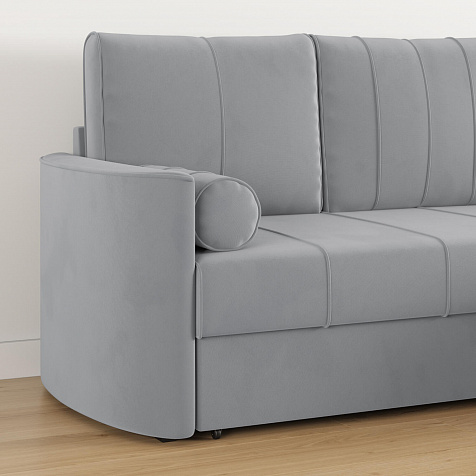 - Механизм трансформации «Дельфин». Диван легко раскладывается — достаточно выдвинуть раму с дополнительным спальным местом из-под более широкой части дивана и потянуть вверх и вперёд за специальную петлю.