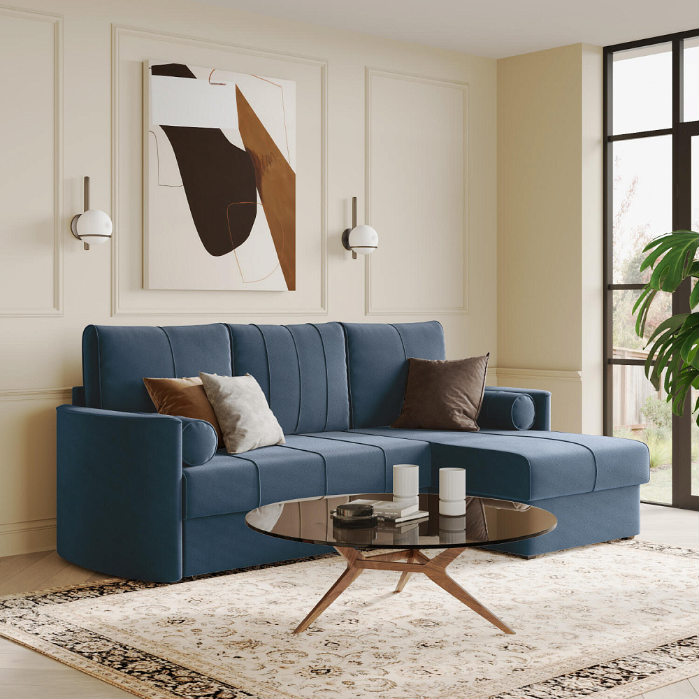 Угловой диван «Амми» — это идеальное сочетание надёжности, простоты и комфорта. Прямая строчка на сиденье и приспинных подушках создает завершённый образ и придает модели мягкую геометричность. Механизм «Дельфин» в сложенном виде поможет сэкономить пространство в комнате и использовать диван для ежедневного сна. Благодаря универсальному дизайну, качественным материалам и эргономичности диван станет главным местом гостиной в современном стиле, сканди или лофт.