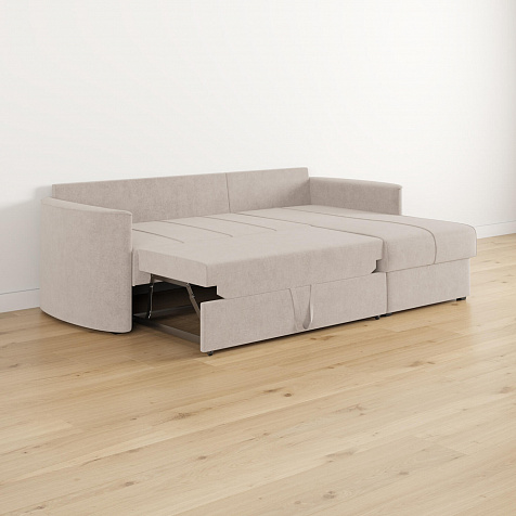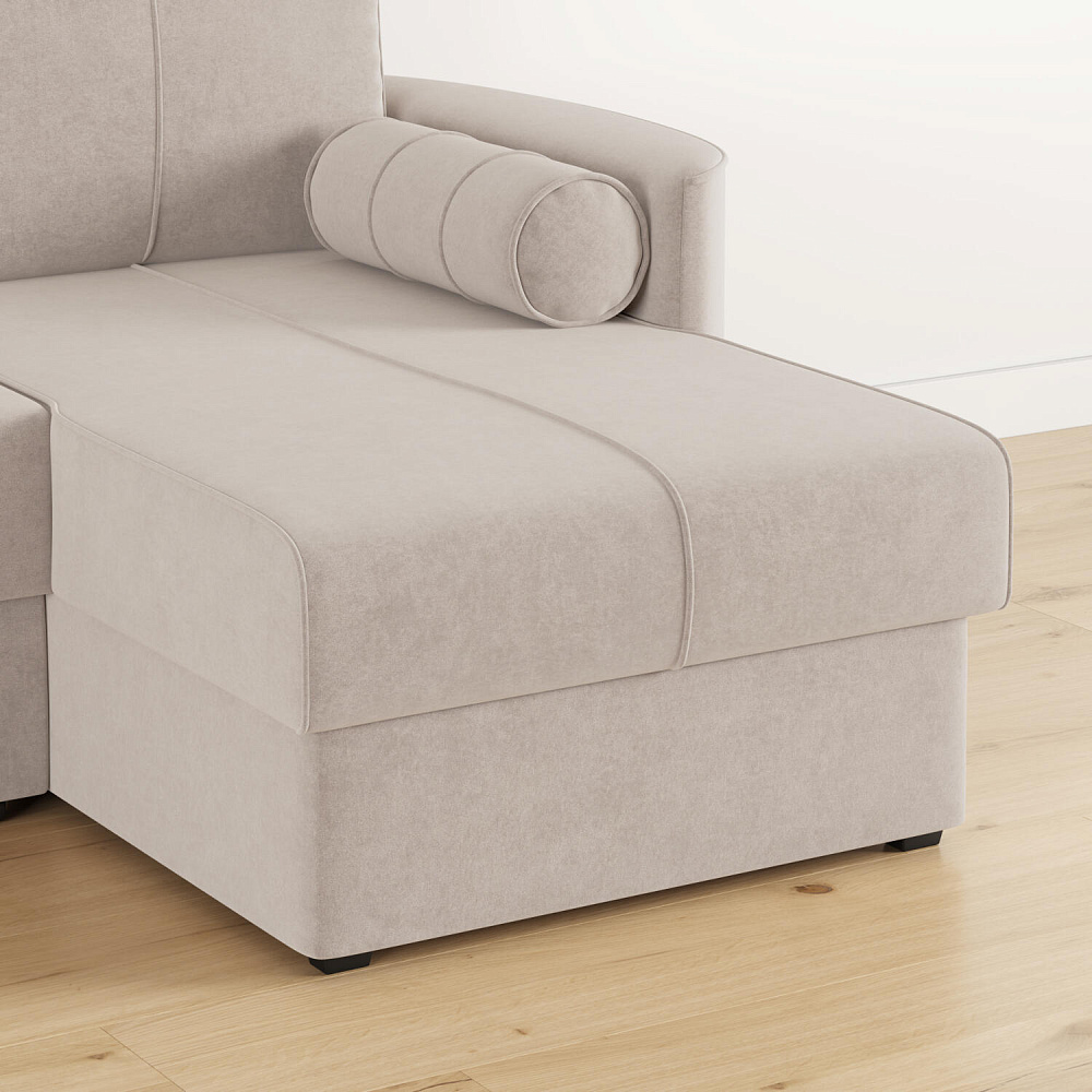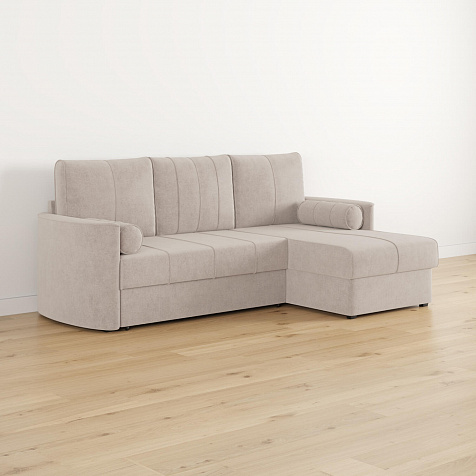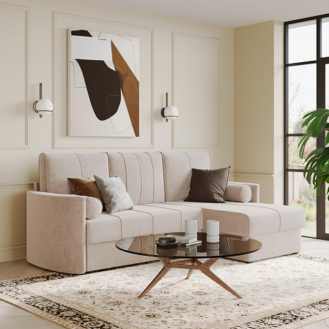 Угловой диван «Амми» — это идеальное сочетание надёжности, простоты и комфорта. Прямая строчка на сиденье и приспинных подушках создает завершённый образ и придает модели мягкую геометричность. Механизм «Дельфин» в сложенном виде поможет сэкономить пространство в комнате и использовать диван для ежедневного сна. Благодаря универсальному дизайну, качественным материалам и эргономичности диван станет главным местом гостиной в современном стиле, сканди или лофт.